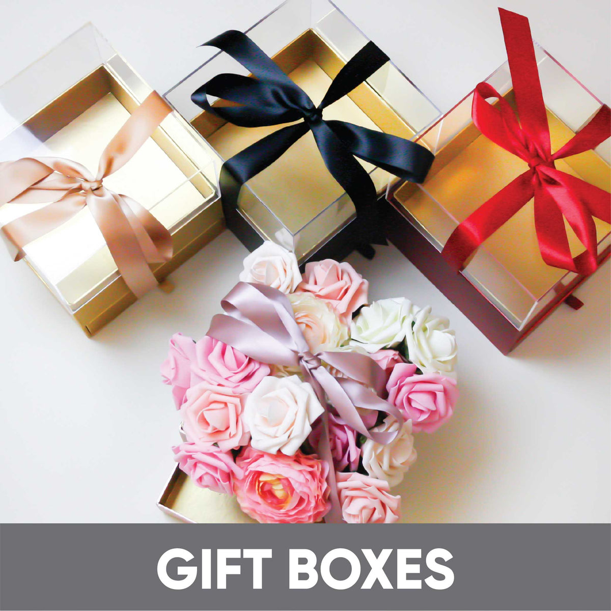White Kraft Gift Boxes with Clear Lid & Satin Ribbon Pack of 12 (Sizes Available)