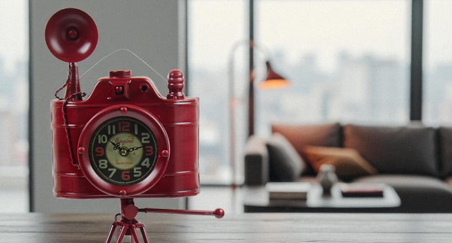 Old-Fashioned Camera Makes A Comeback - As A Gorgeous Timepiece. This vintage camera clock is sure to make guests take a second look. The realistic details will remind you of the 1920's. It looks so real that you will want to grab it and start shooting.