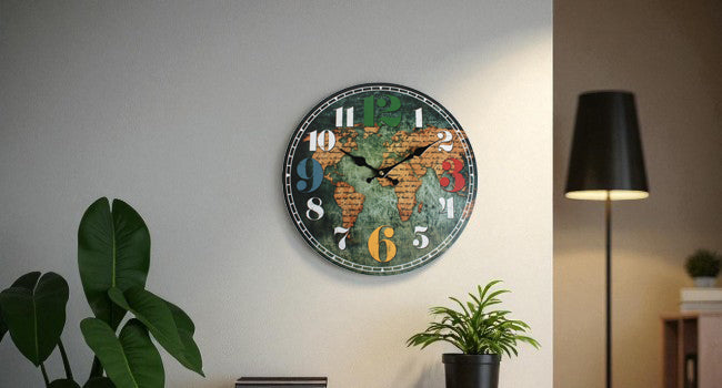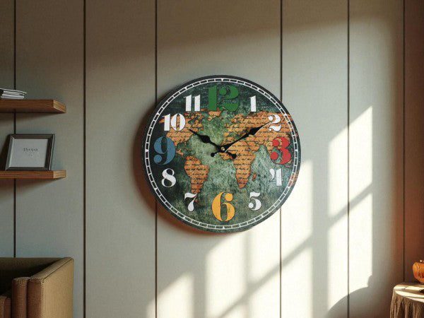 Round World Map Wall Clock