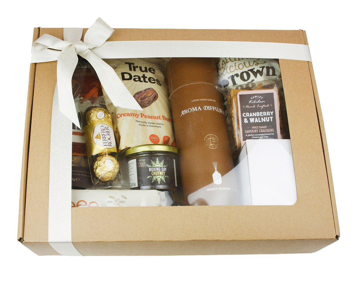• 🏡 RELAXING HOME ESSENTIALS – Comes with a scented candle and an aroma diffuser to create a calming atmosphere. A thoughtful addition that transforms this food hamper into a relaxing experience.