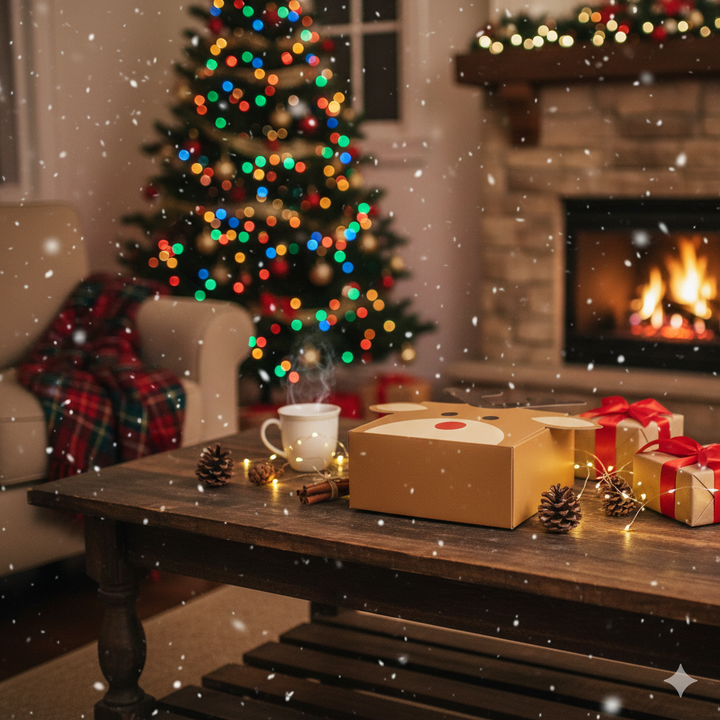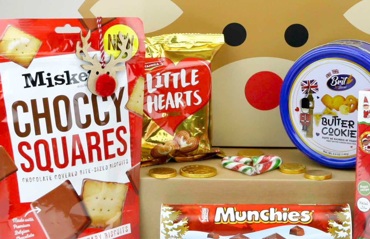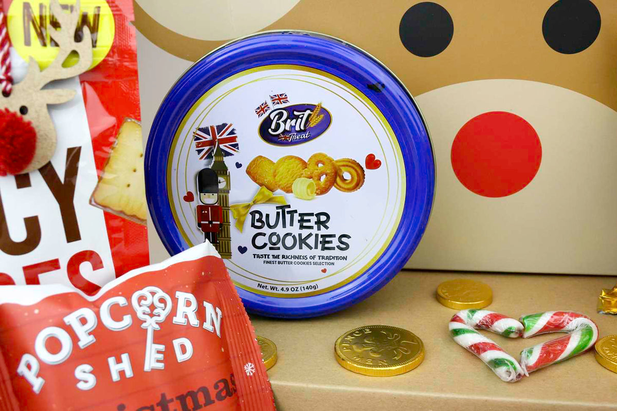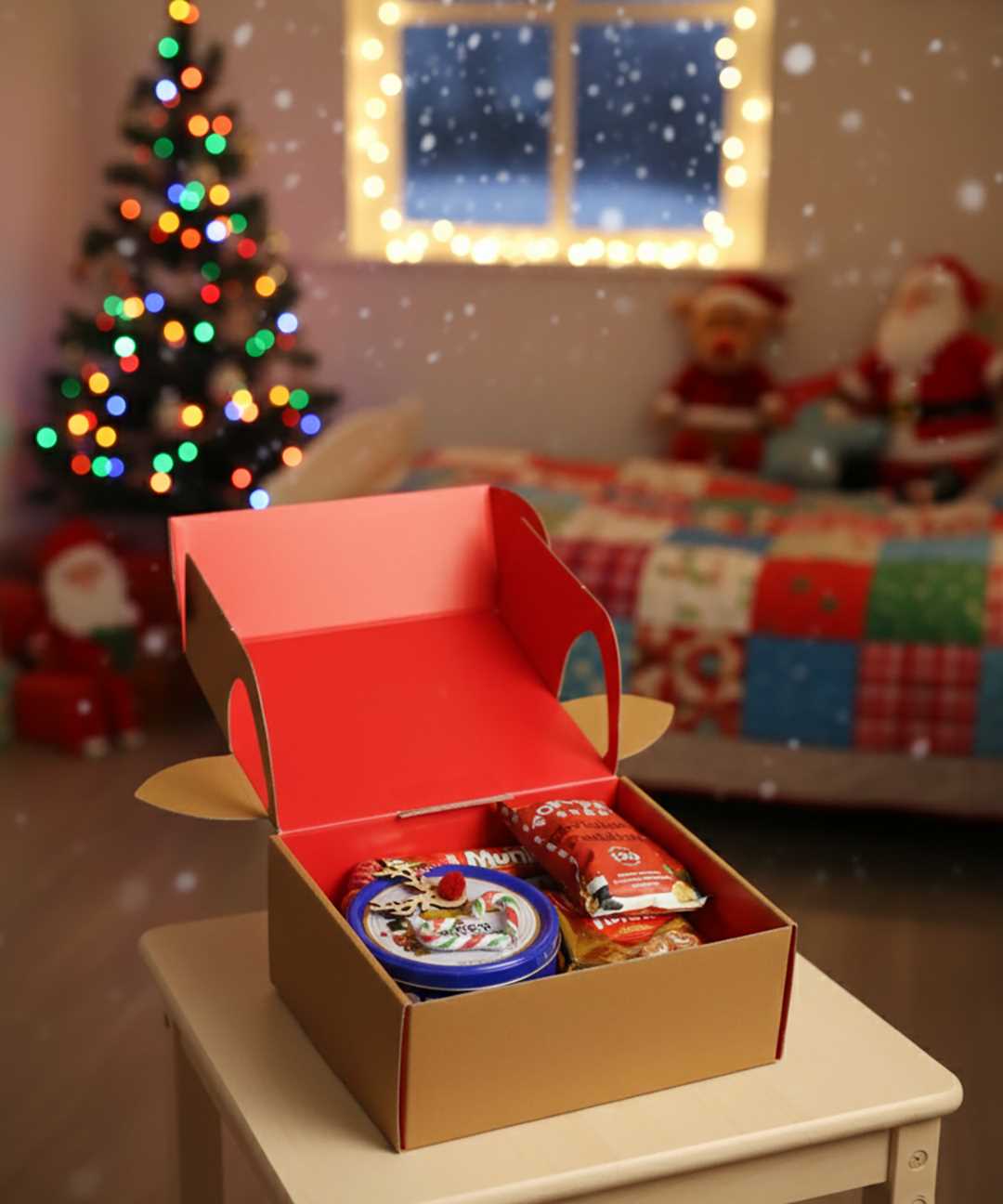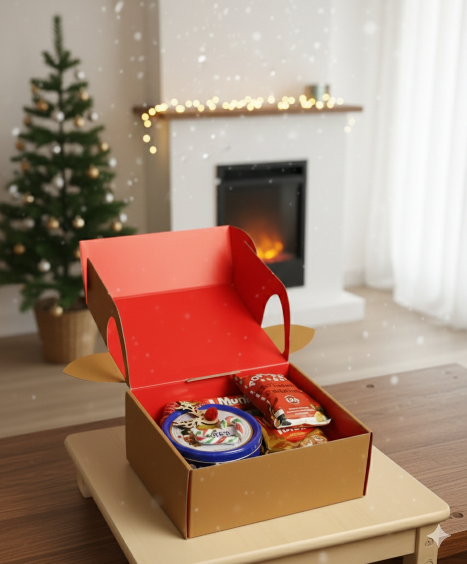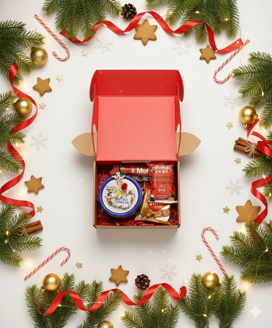 - 🦌 FUN REINDEER CHRISTMAS HAMPER – A playful festive gift box designed especially for kids, featuring a cute reindeer design filled with delicious sweets, biscuits, treats and holiday surprises.