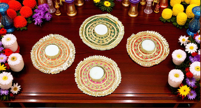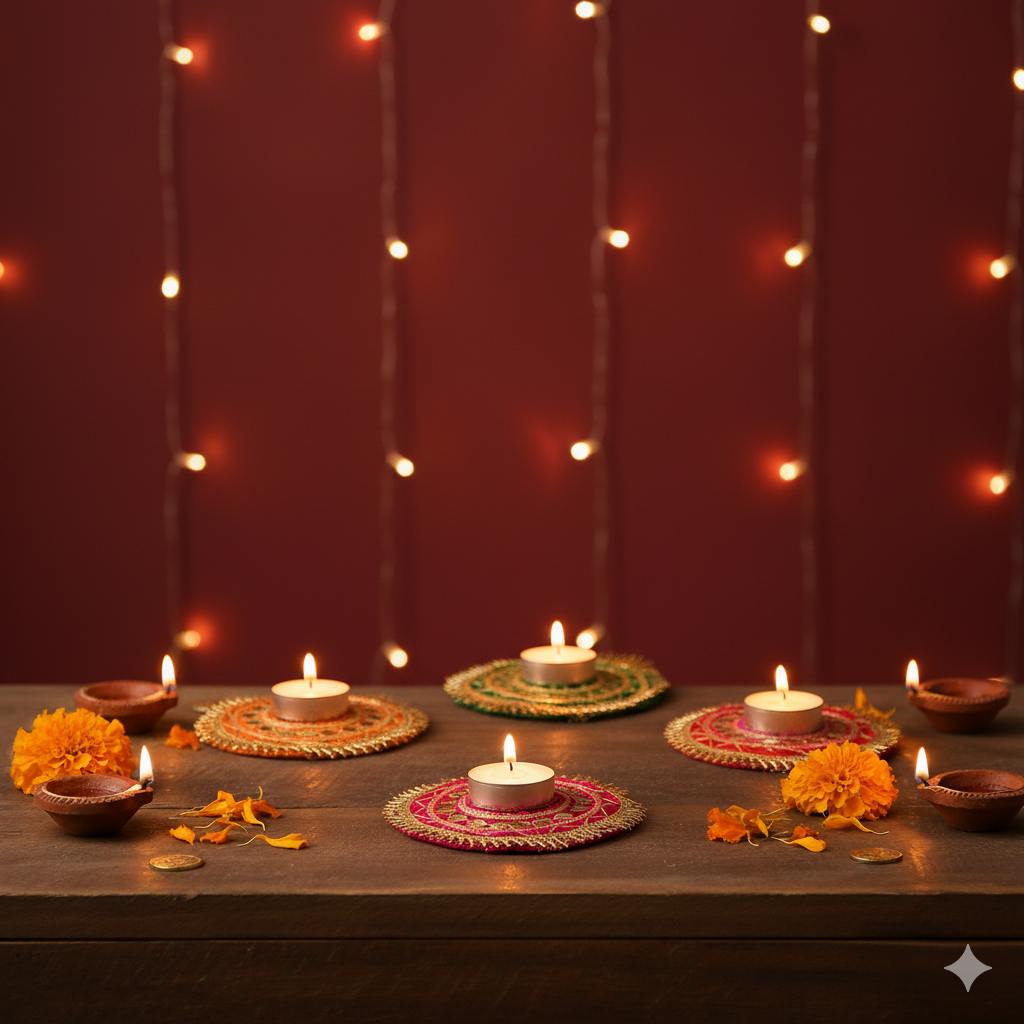 Set of 4 Rangoli Gota Diya Tea Light Candles