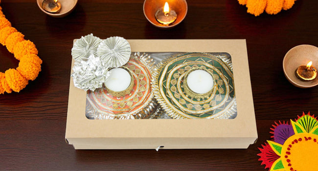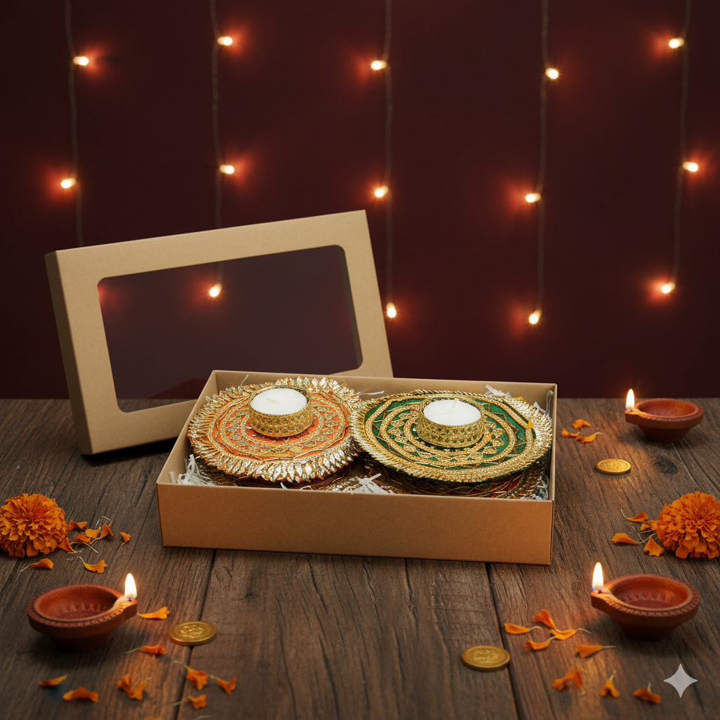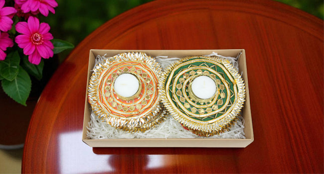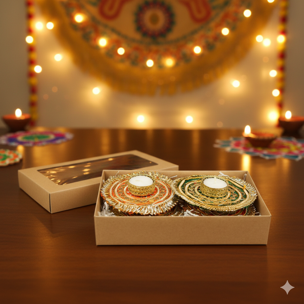 • 🪔Handcrafted Decorative Diwali Diyas: 4 intricately designed golden and vibrant traditional tealight holders. Each diya is adorned with gold detailing, perfect for adding that warm glow to any festive space.