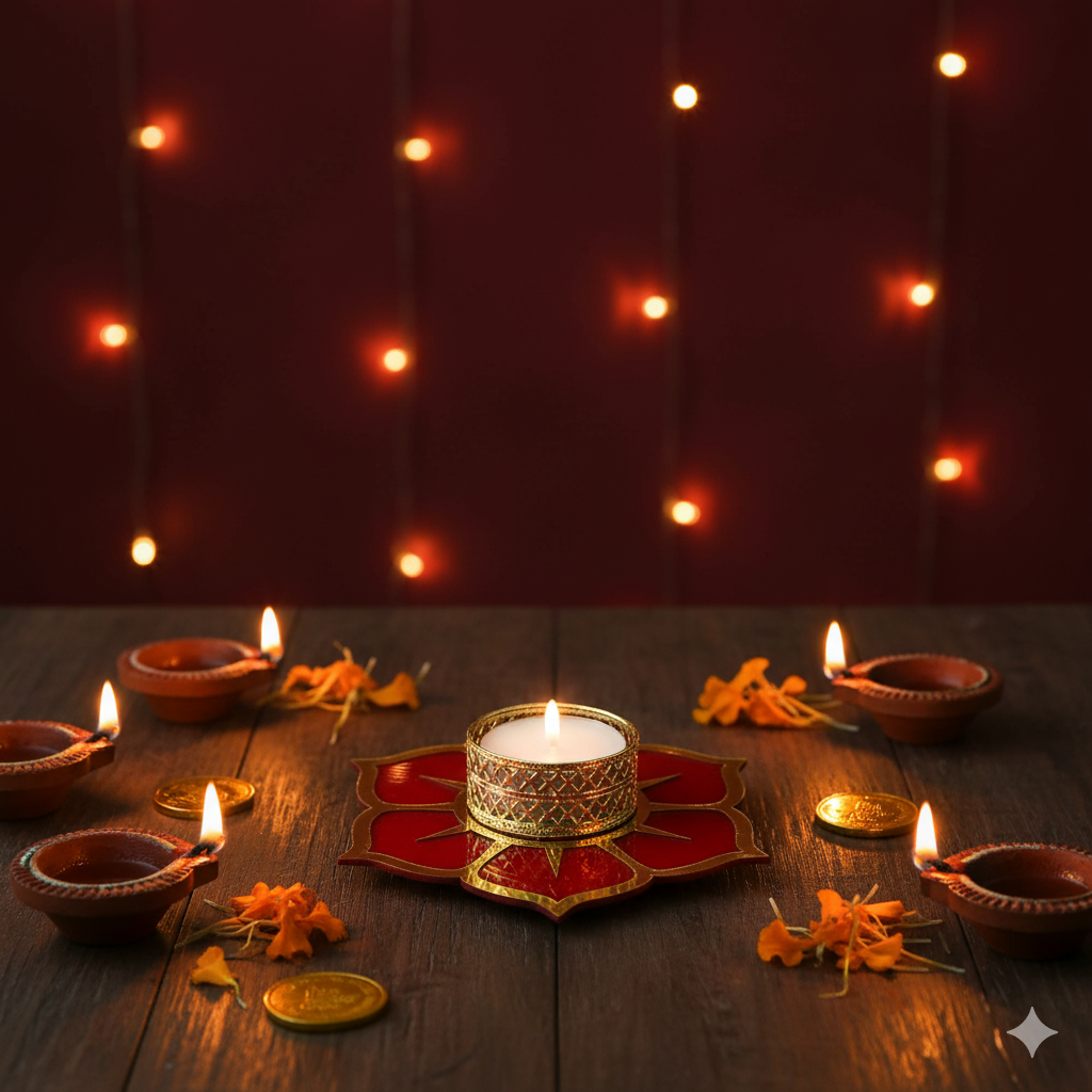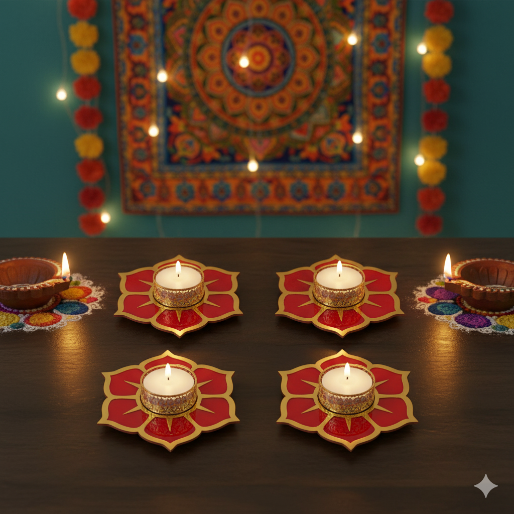 - 🕯️Long-Lasting: High-quality acrylic tea light candle holders ensure longer burn times, perfect for pooja rooms, rangoli setups, or as table centerpieces.