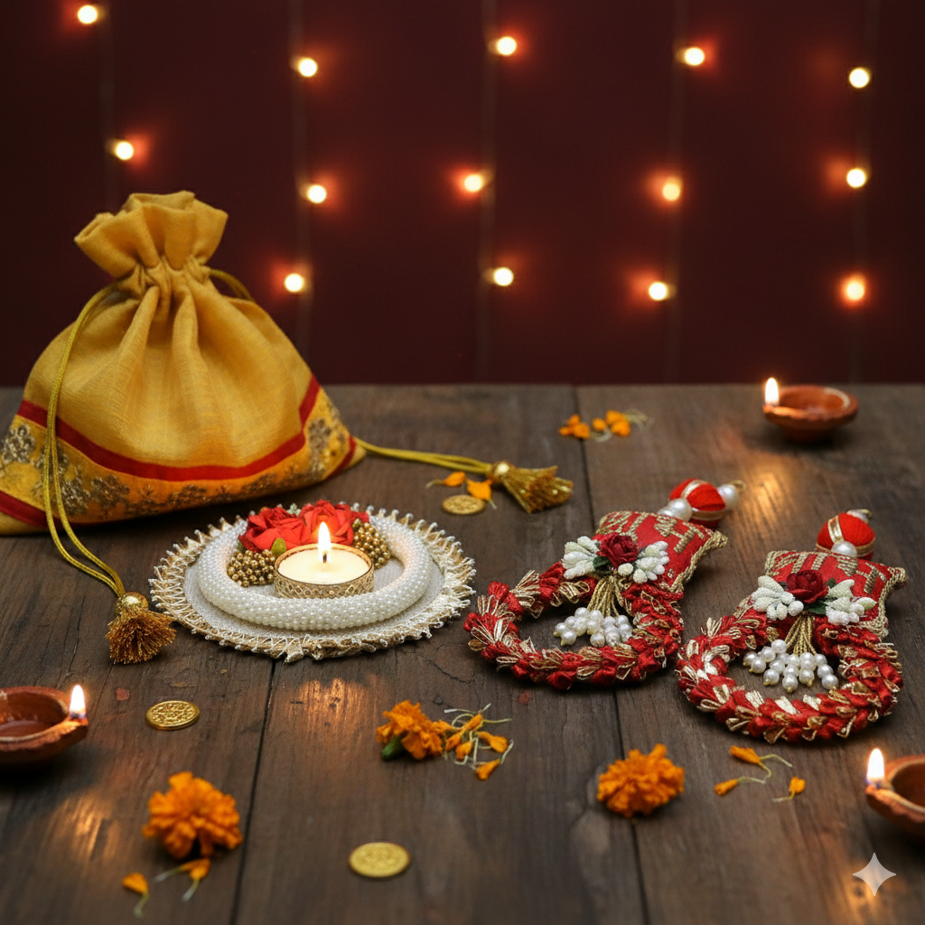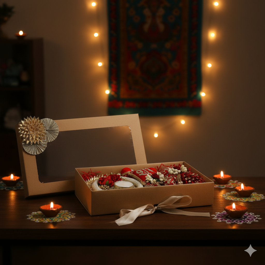 - 🎀Auspicious Diwali Décor: Designed to enhance the spiritual essence of Diwali, this hamper beautifully combines traditional elements with modern aesthetics, ideal for adorning your home or gifting to loved ones.