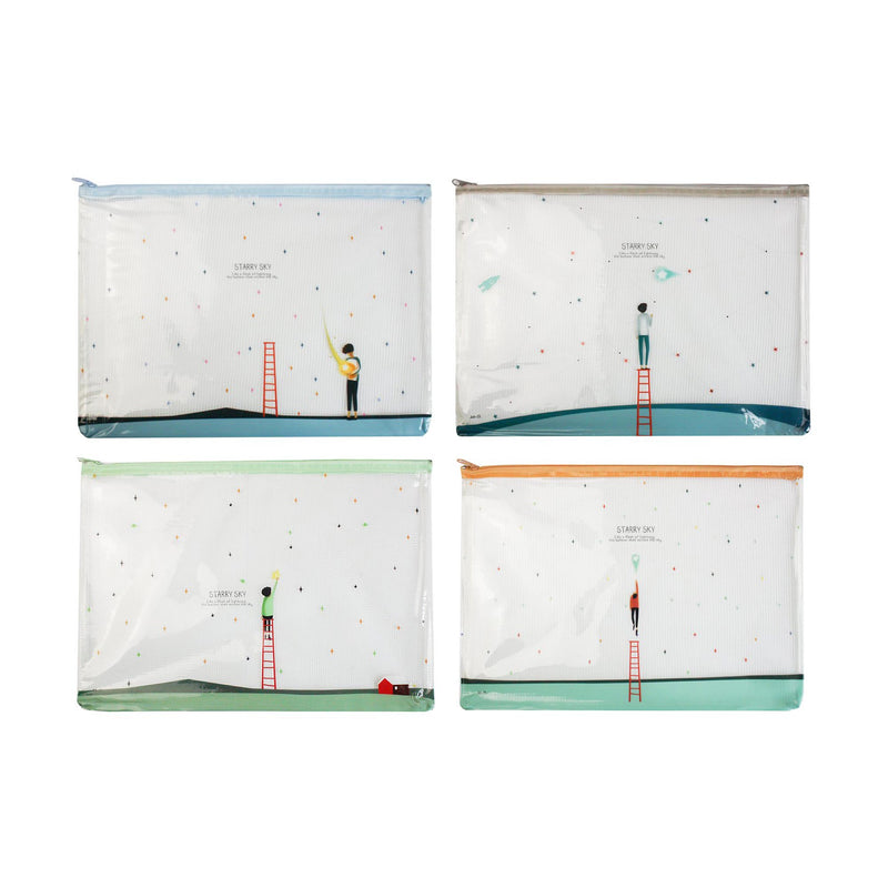 Starry Sky A4 Zipper Document Pouches - Pack of 4