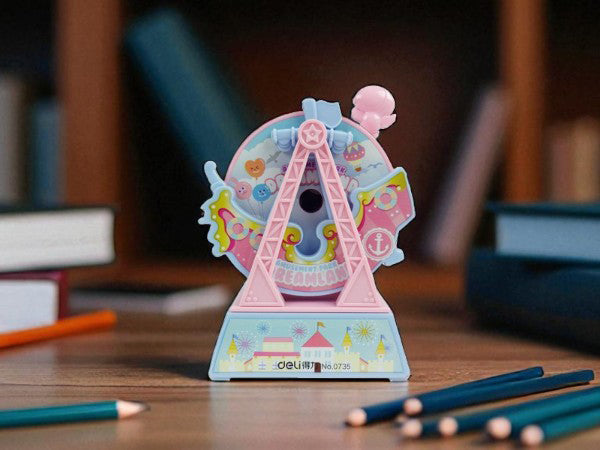 - Whimsical Design: Features a fun amusement park Ferris wheel theme, making sharpening pencils enjoyable.