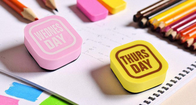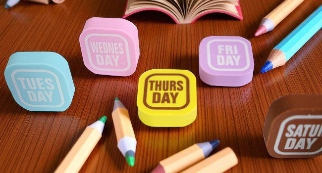 - Set of 7 Erasers: Includes seven erasers, each labeled with a different day of the week, perfect for daily use.