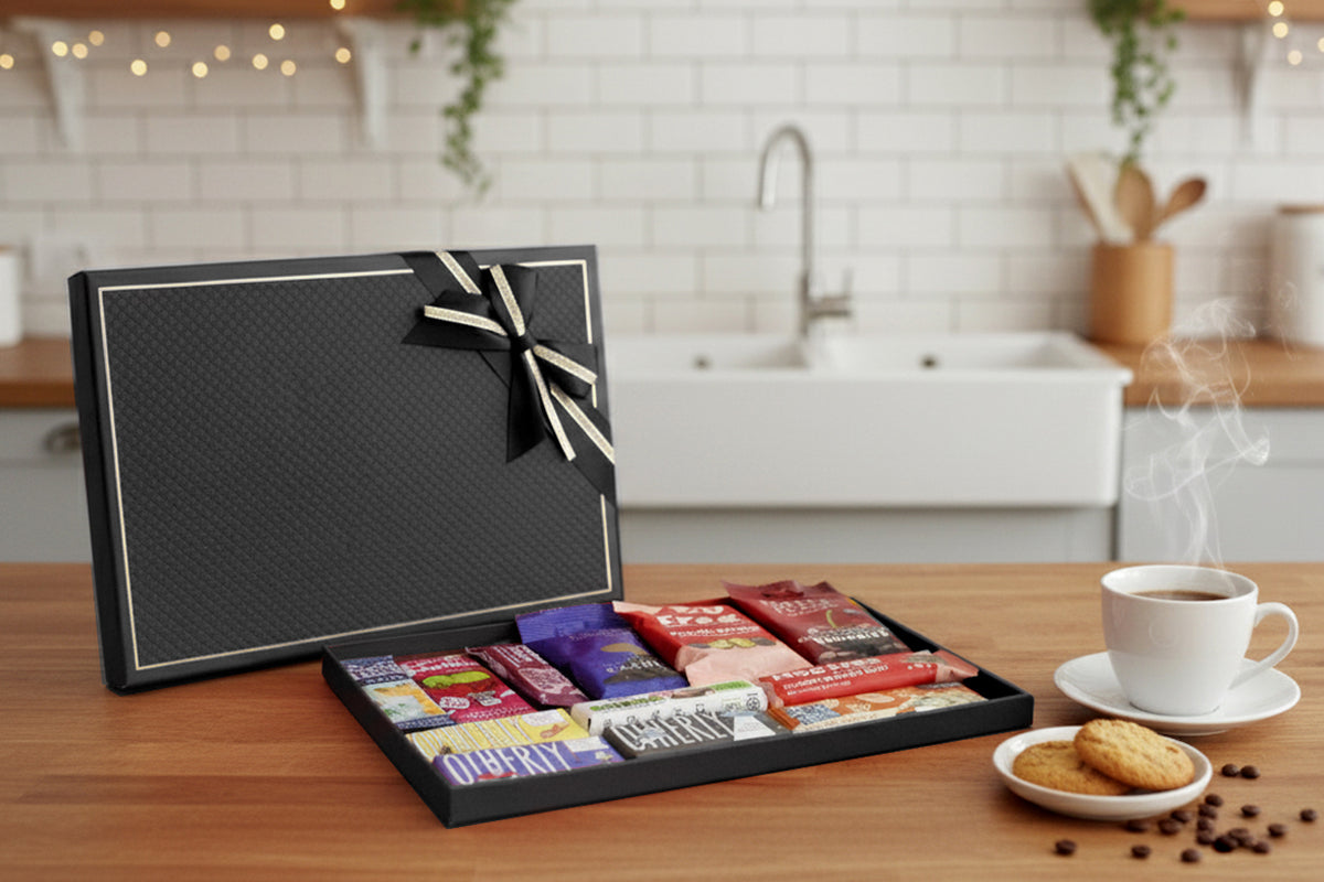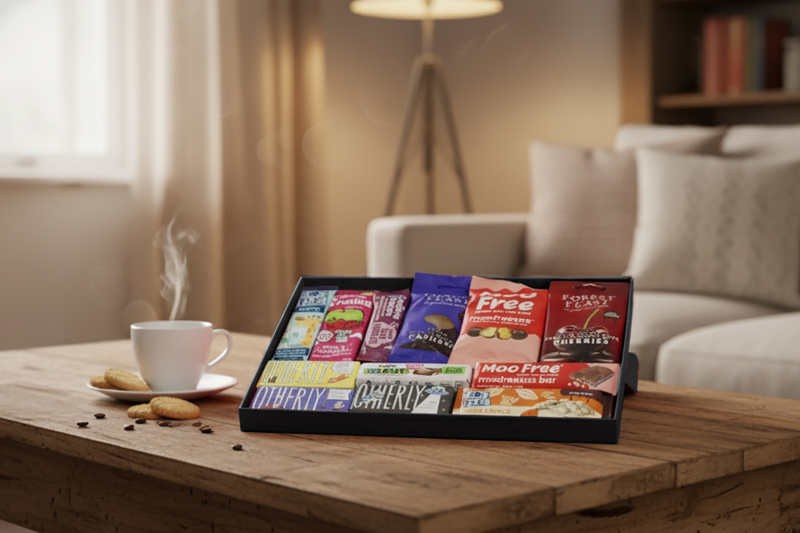 • 🌱 Vegan & Dairy-Free Treats: A thoughtful selection of chocolates, nut snacks, and fruit delights for plant-based lifestyles.