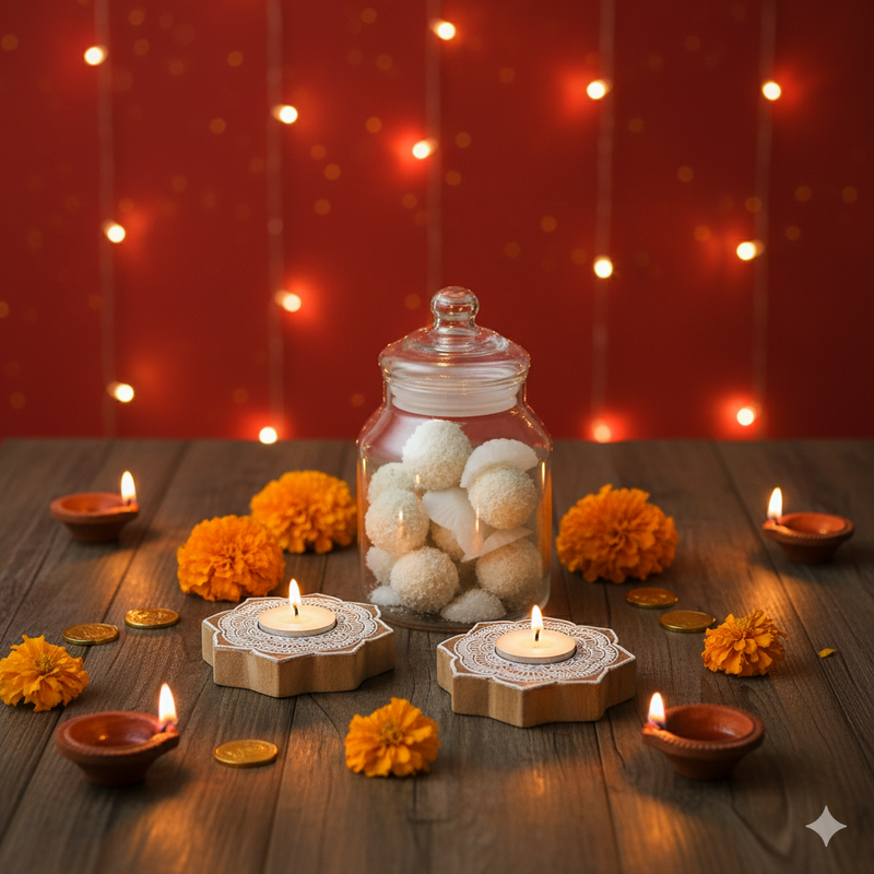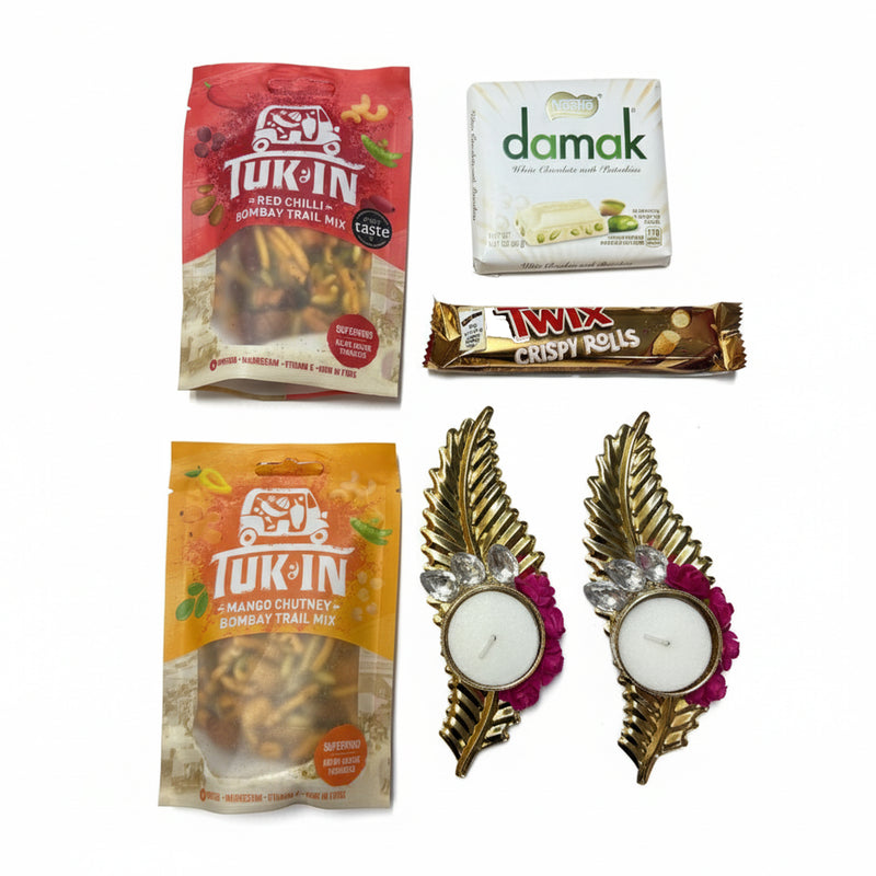 Luxury Diwali Festive Gift Hamper Box with Diyas, Chocolates, Snacks Festive treats