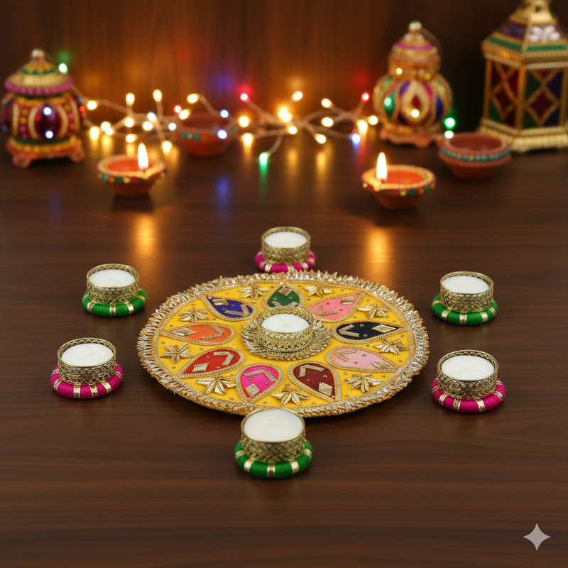 Set of 7 Traditional Gota Rangoli Gota Diya Tea Light Candles