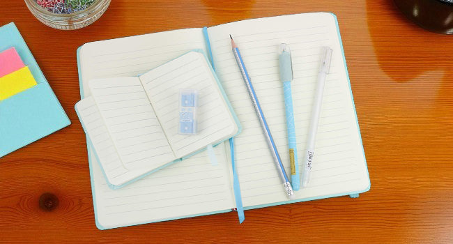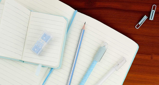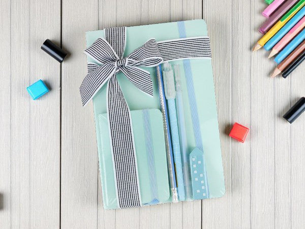 - 📝 Complete Set: Includes a notebook, pencil, pen, eraser, and more – all beautifully packaged in a matching blue theme.