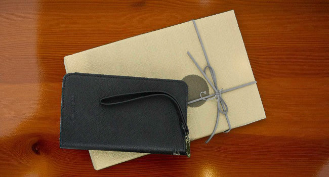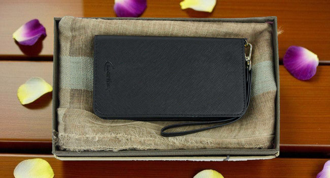 - 👝 Stylish Wallet/Pouch – Sleek black wristlet wallet with zip closure, ideal for carrying essentials securely in style.