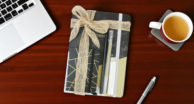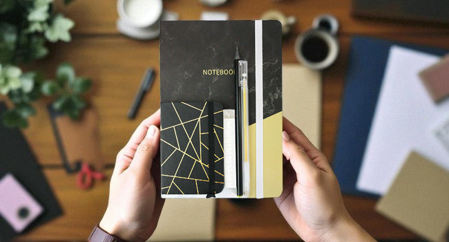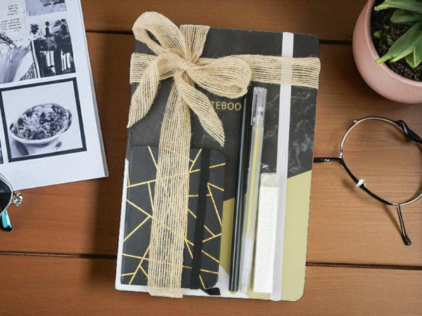 Elegant Marble Notebook Gift Set - Black/Gold | Perfect for Students and Professionals
