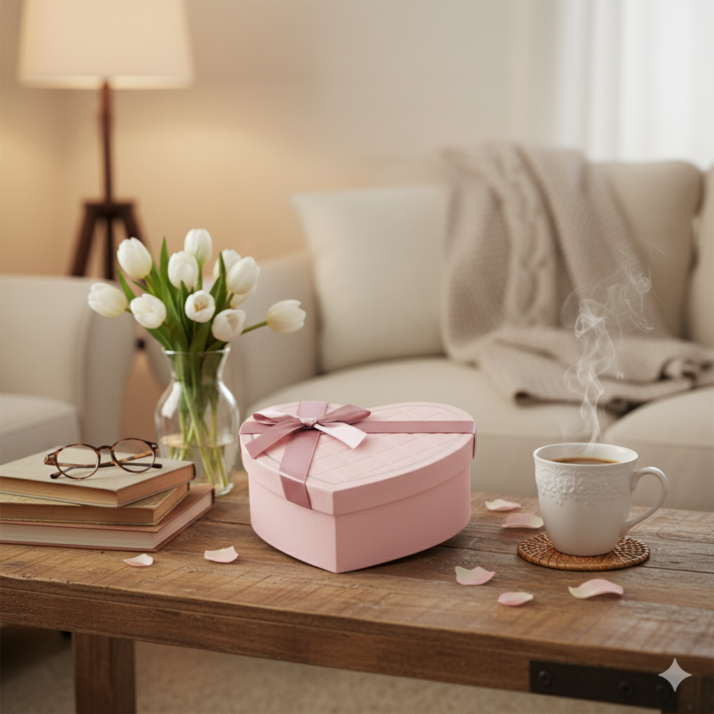 - šRomantic Heart Design ā Elegant heart-shaped gift boxes with satin ribbon bow, perfect for love-themed celebrations.