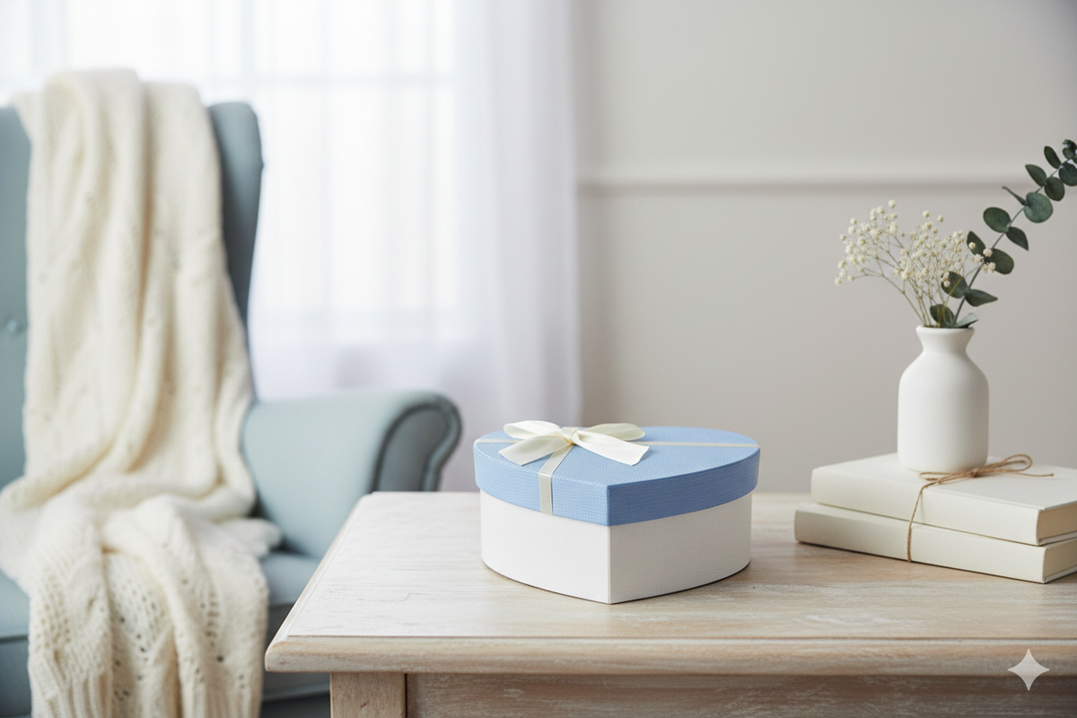 Luxury Heart Shaped White/Blue Gift Box - Single (Sizes Available)