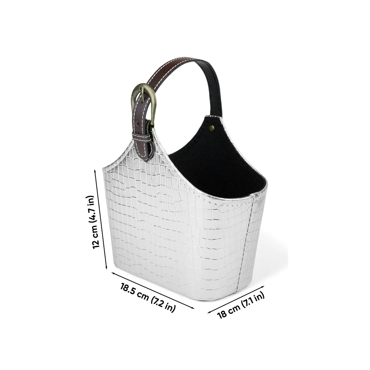 Luxury Faux PU Leather 18.5 × 12 × 18 cm Croc Textured Gift Hamper Storage Basket with Adjustable Handle - Silver