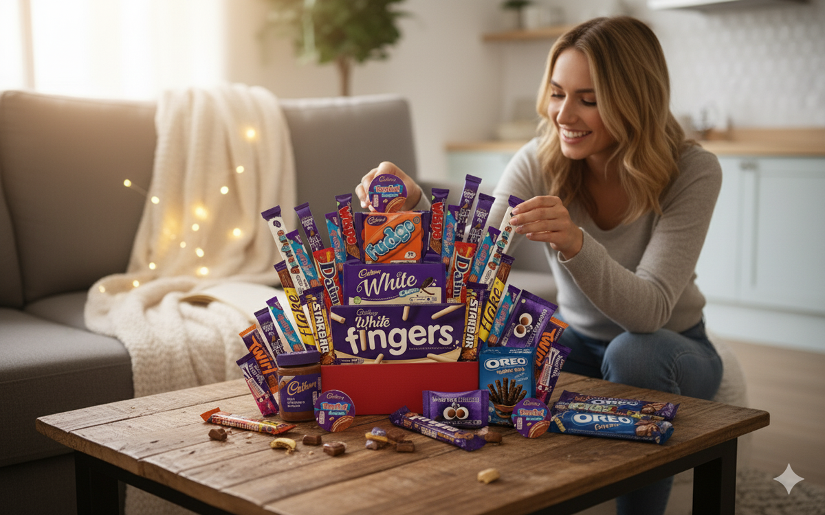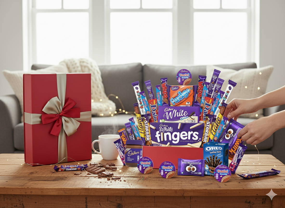 - Premium Chocolate Selection – A delicious mix of assorted chocolate bars, creamy biscuits, and indulgent spreads for a heavenly treat! 🍫✨