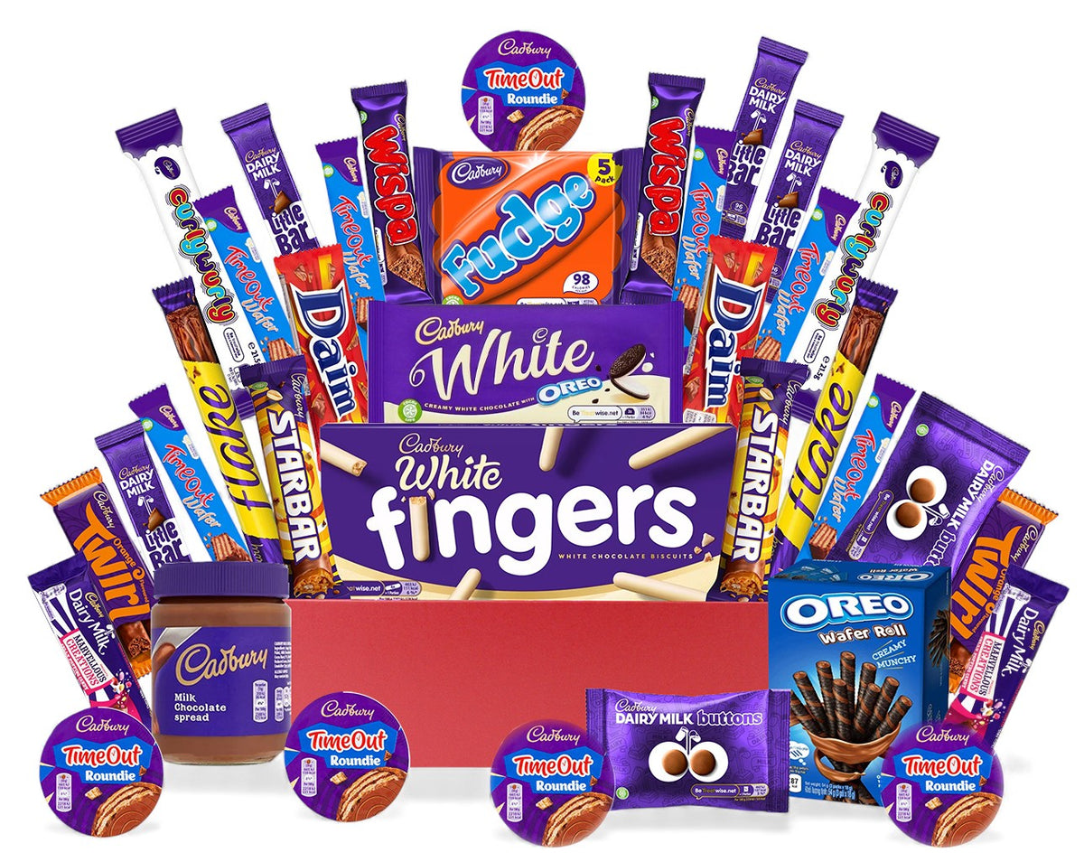 - Contains: Wispa, Little Bars, Starbar, Chocolate Spread, Twirl Orange, Creamy White Chocolate Bar, Curly Wurly, Daim Bar, Chocolate Cream Filled Wafer Rolls & more. 🍫