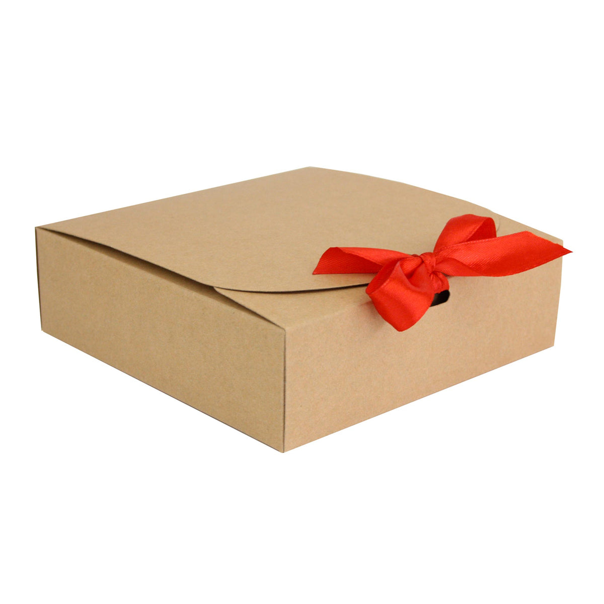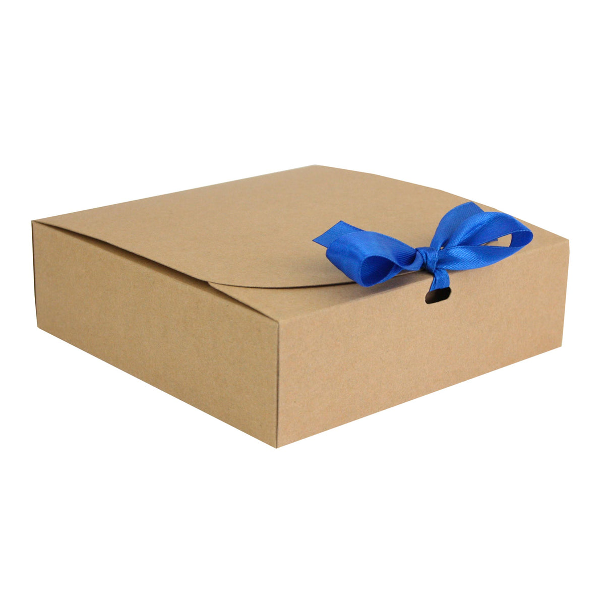 Brown Top-Flap Style Kraft Boxes with Ribbon Pack of 12 (Sizes Available)