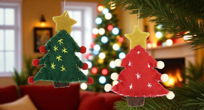 - ā Festive Tree Designs: Includes green, red, and white felt Christmas trees topped with stars.