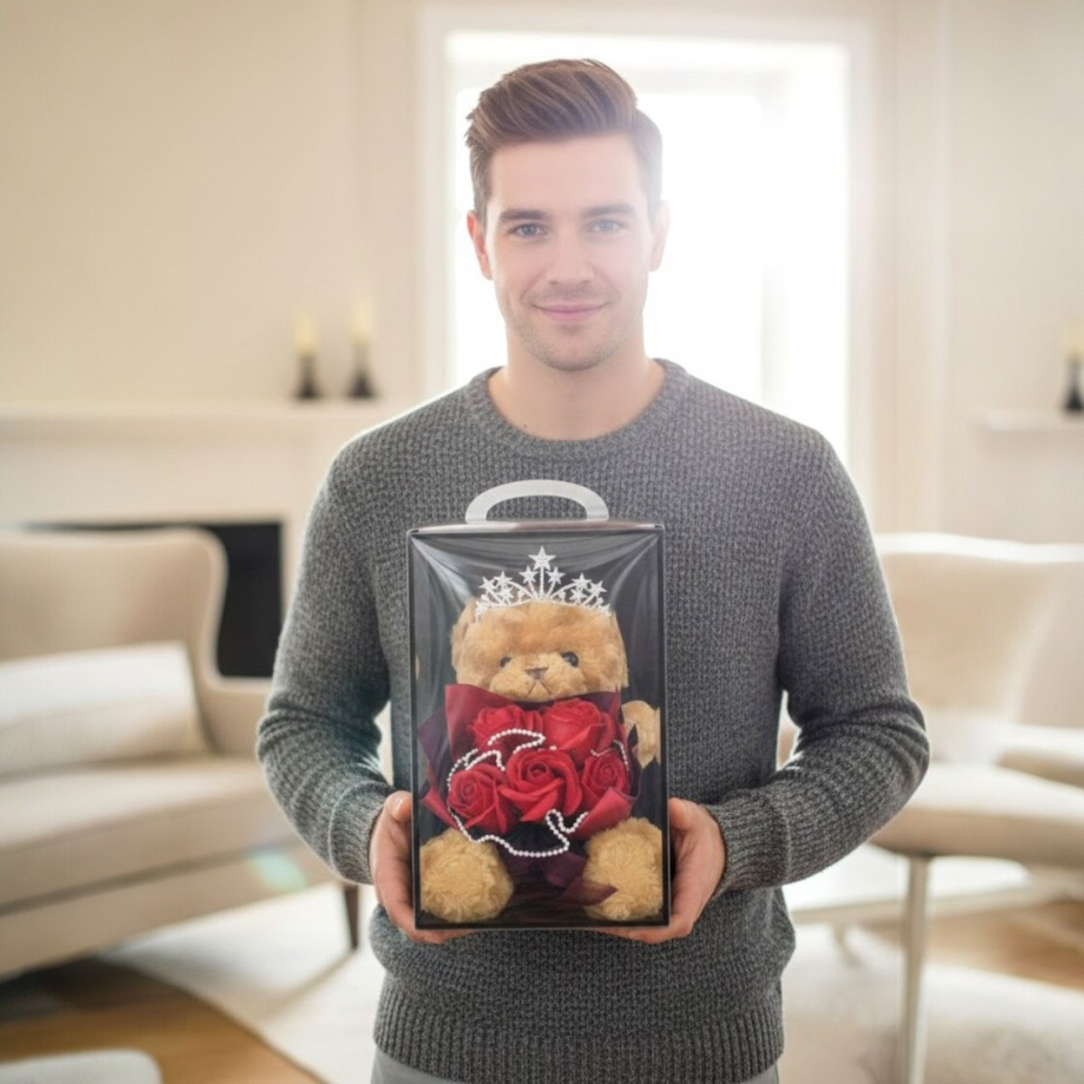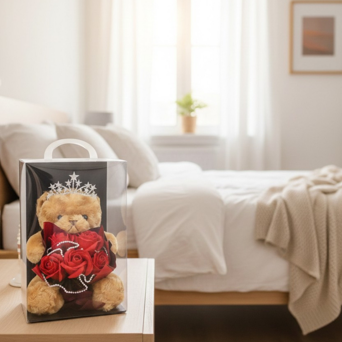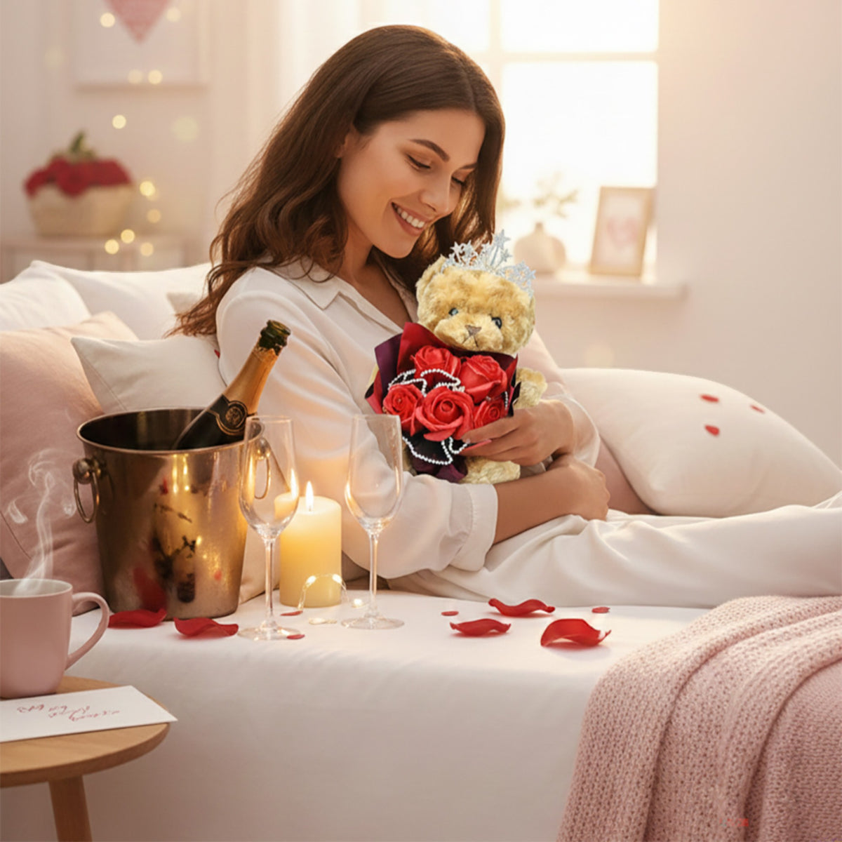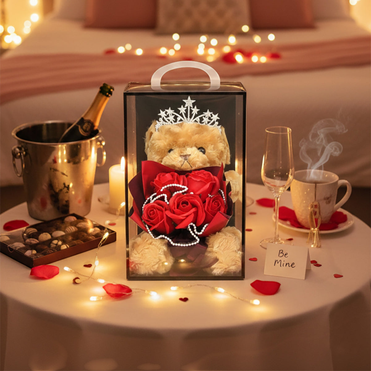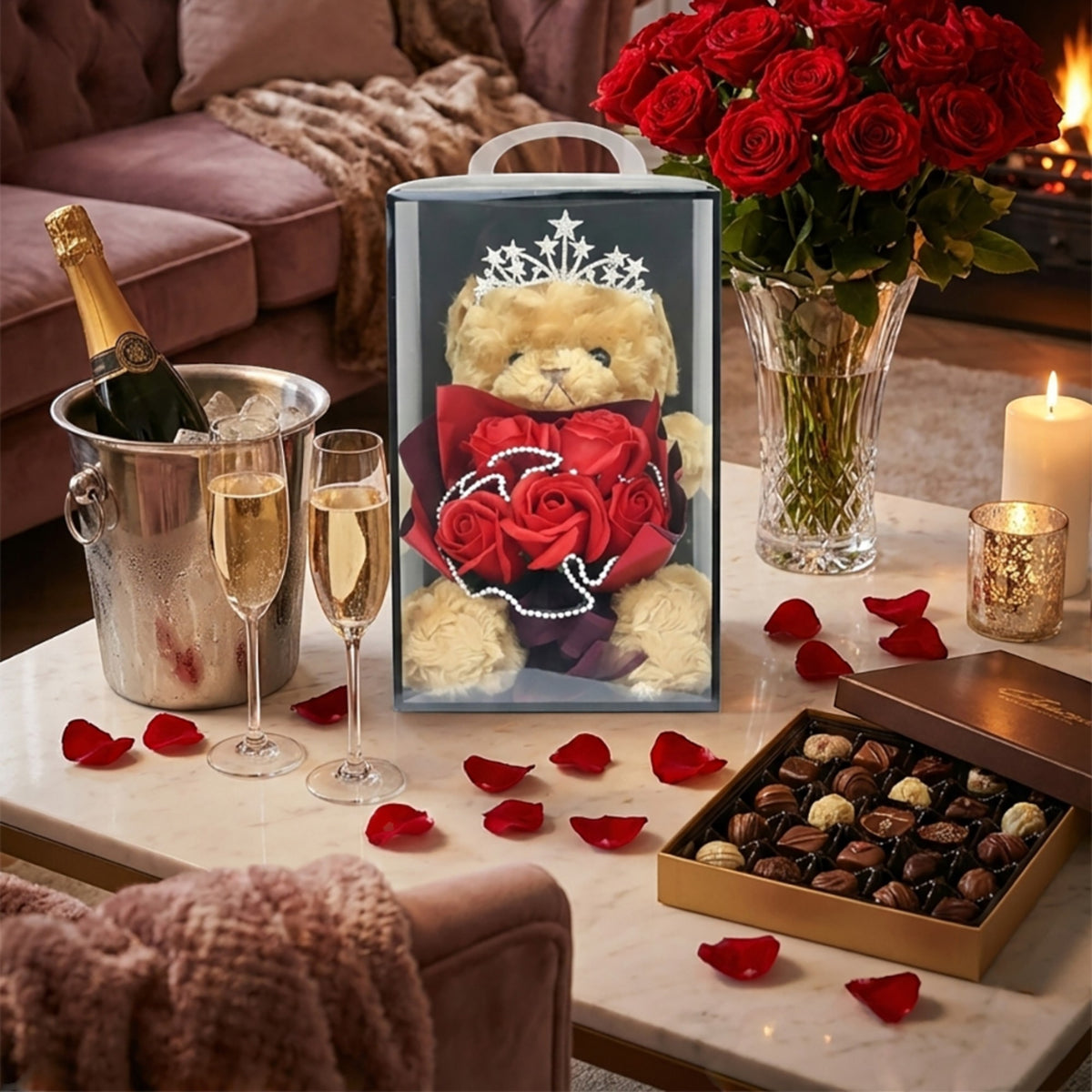 • ADORABLE TEDDY BEAR INCLUDED — Complete gift set with cute plush teddy bear. No need to buy anything extra — this is the full romantic gift package