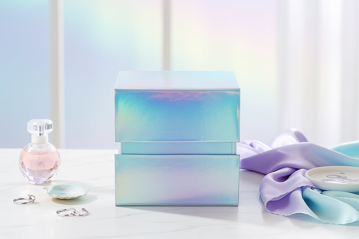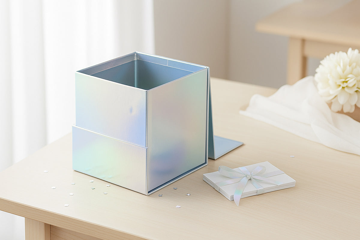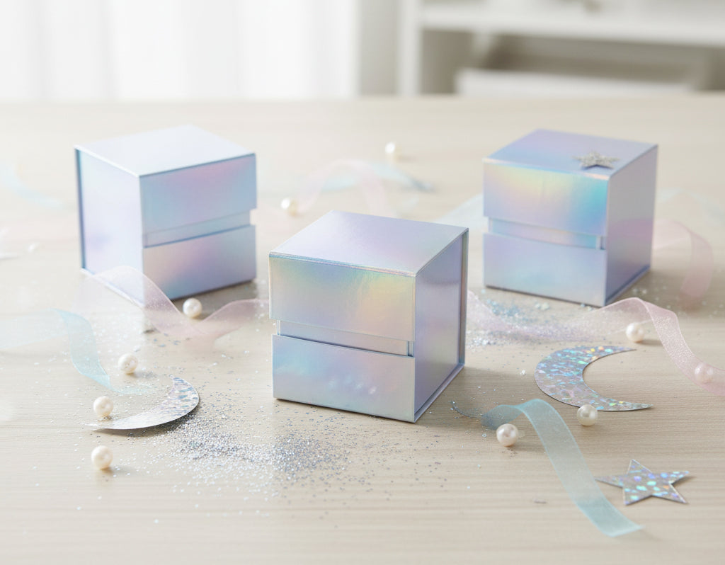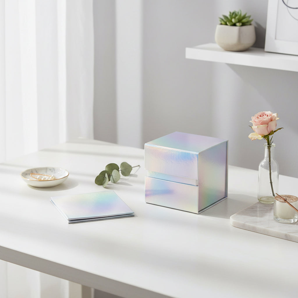 - ✨ Holographic Luxury Gift Box – Stunning iridescent finish that reflects rainbow colours for a modern, eye-catching look.