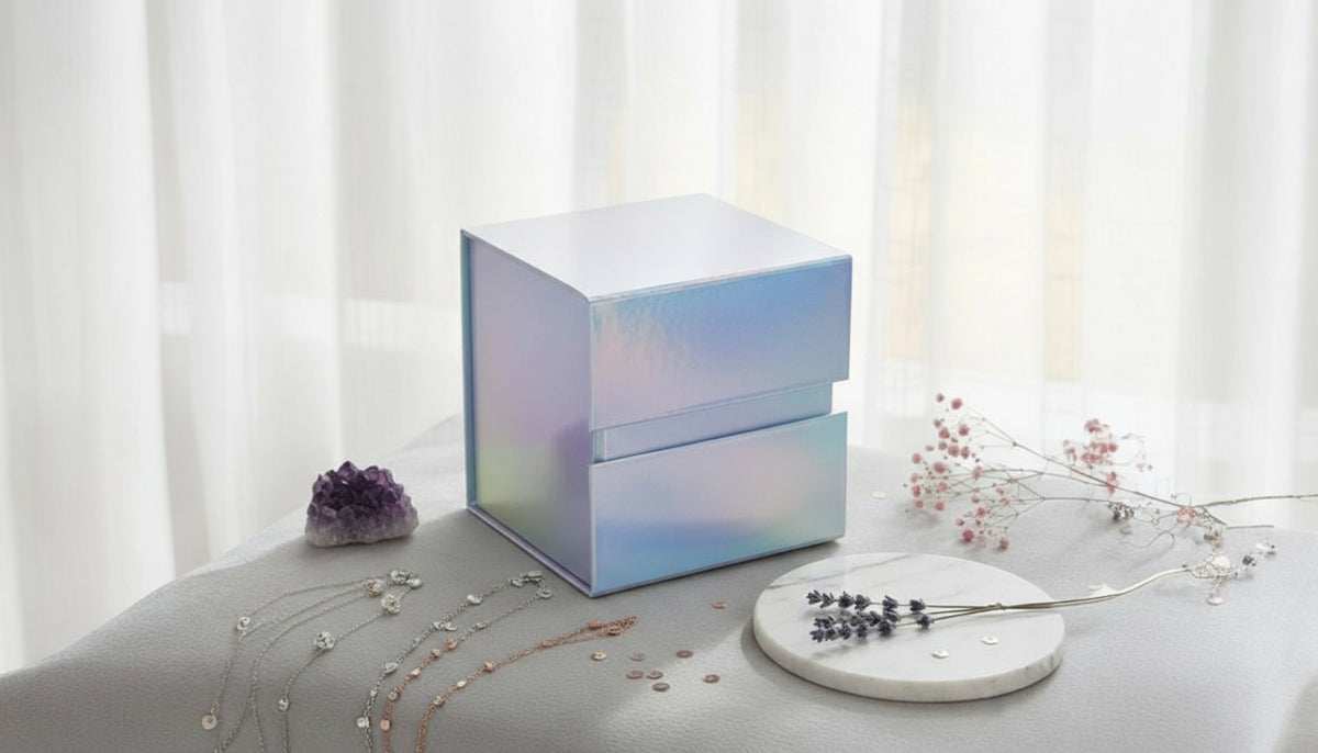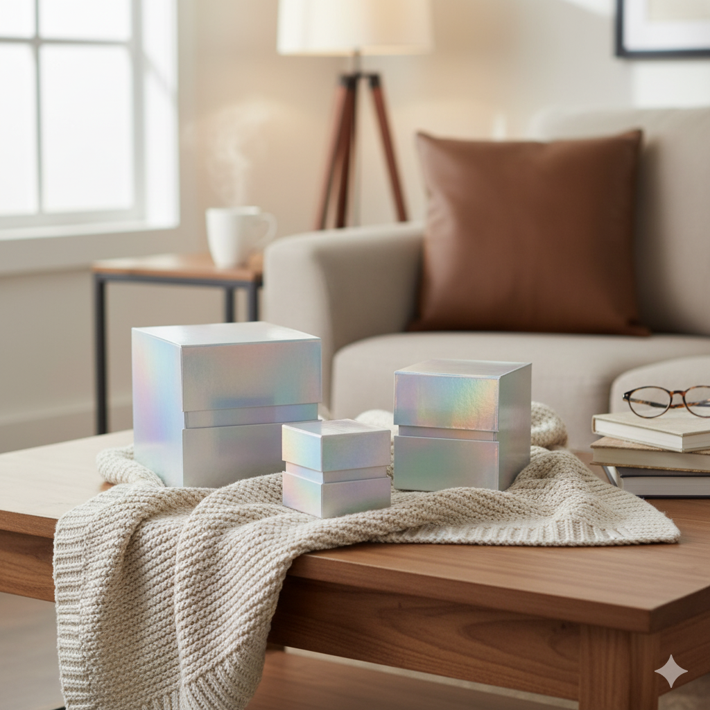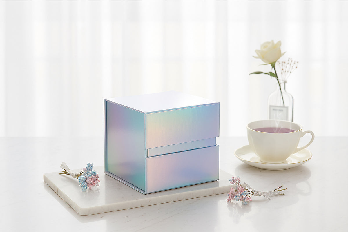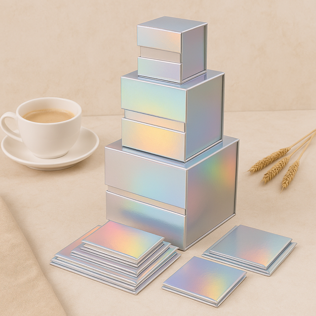 - ✨ Holographic Luxury Gift Box – Stunning iridescent finish that reflects rainbow colours for a modern, eye-catching look.