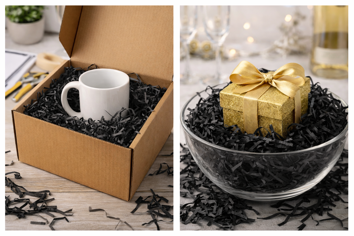 Shredded Tissue Paper for Packaging and Decor - Black