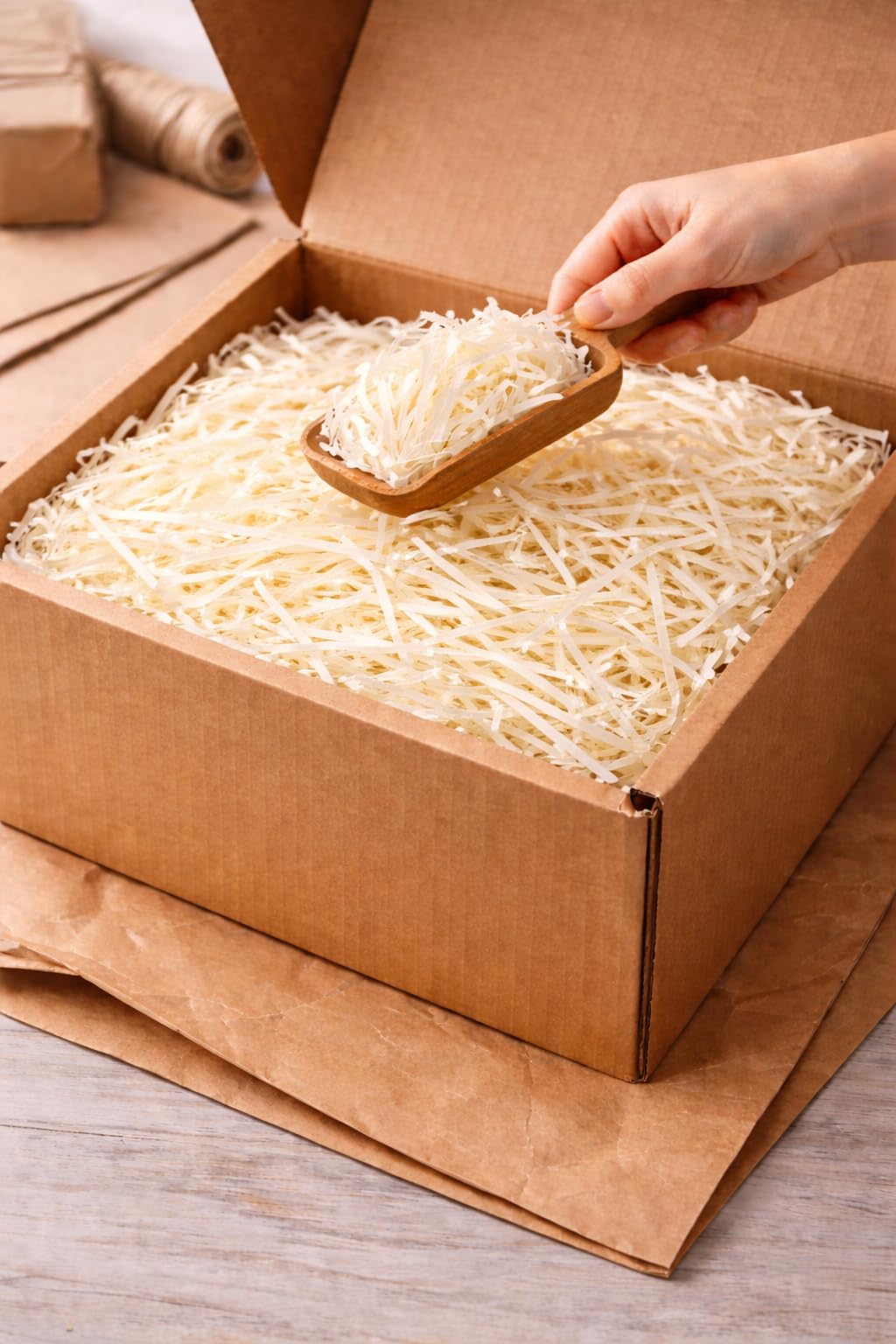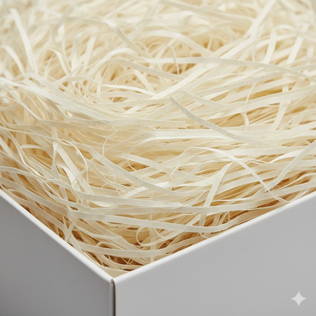 This shredded tissue paper is not only functional for padding and protection but also adds a luxurious touch to your gift-giving, making every occasion special with its elegant presentation.