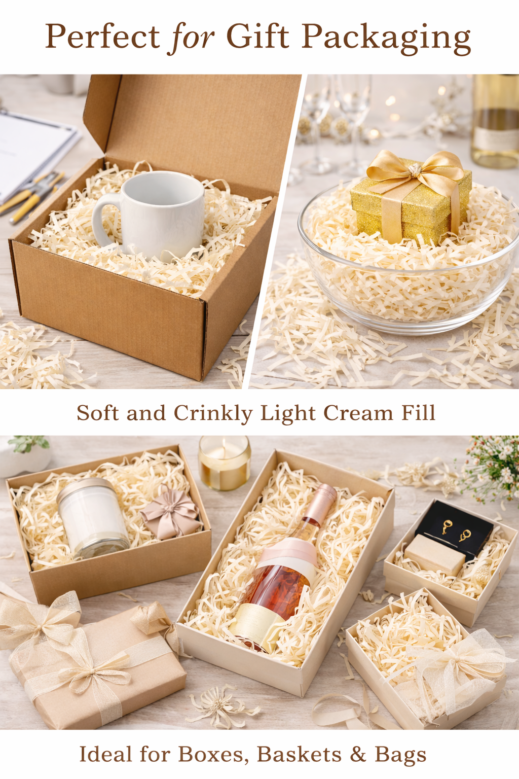 Shredded Tissue Paper for Packaging and Decor - Cream