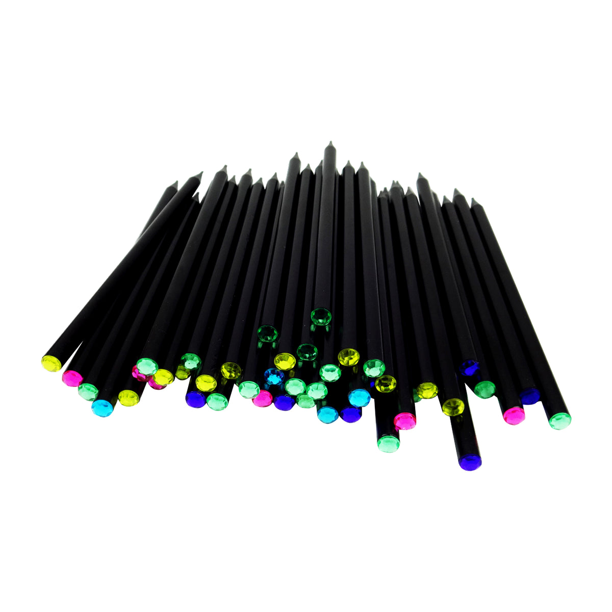 Black Wood Pencils With Crystal Rhinestone Detail (Set of 48)