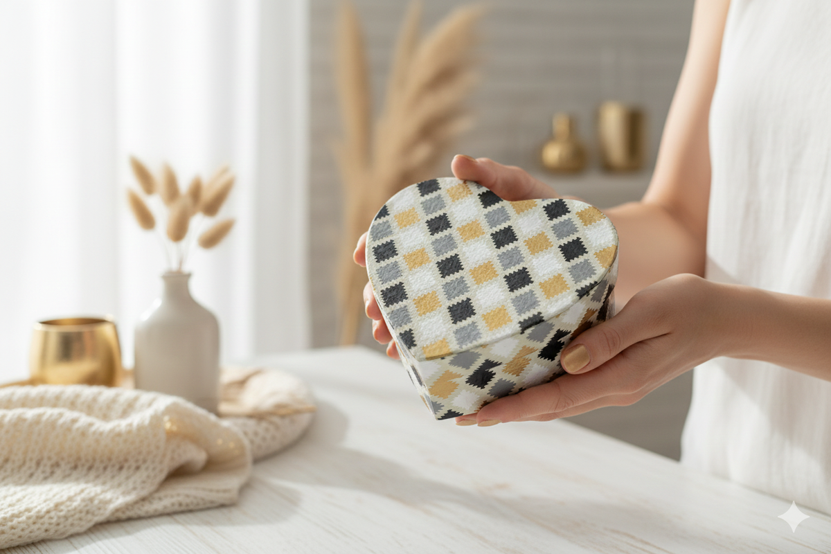 - Handcrafted Elegance: Each box is meticulously handmade, featuring a stylish chequered pattern in vibrant colour, perfect for luxurious presentations.