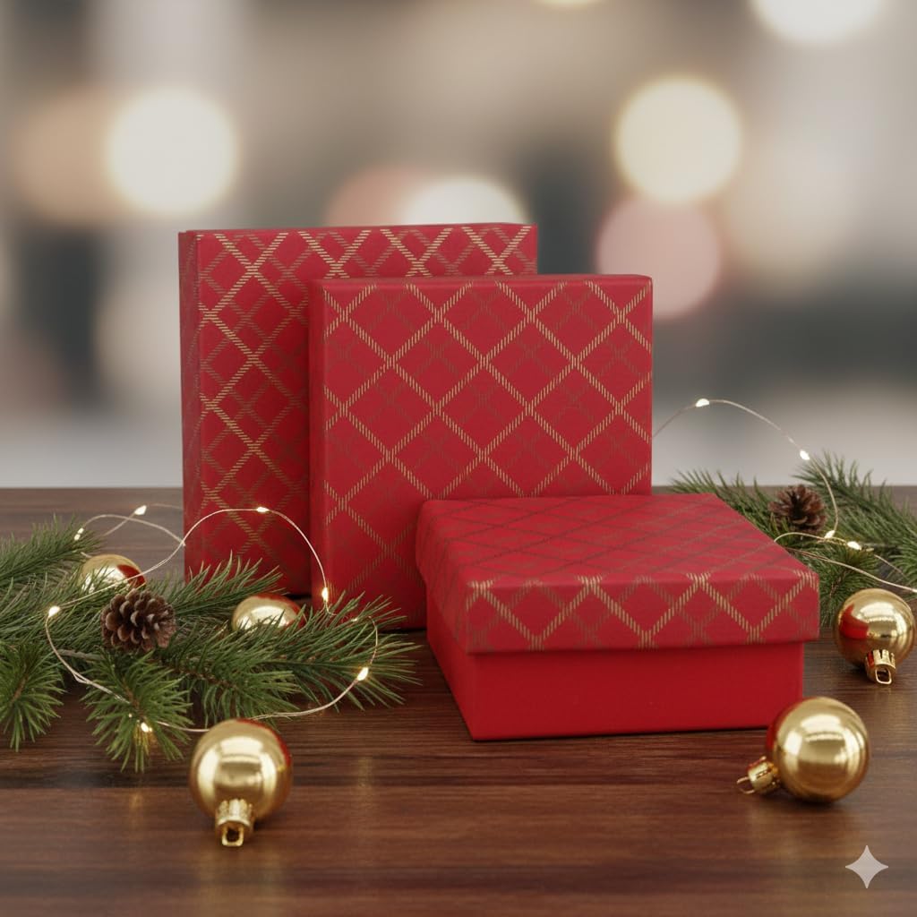 Handcrafted Chequered Red Gift Boxes - Set of 3
