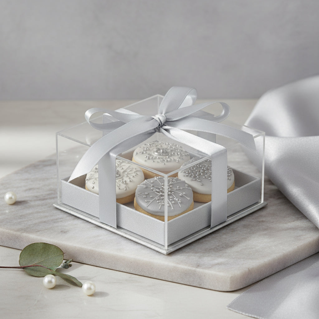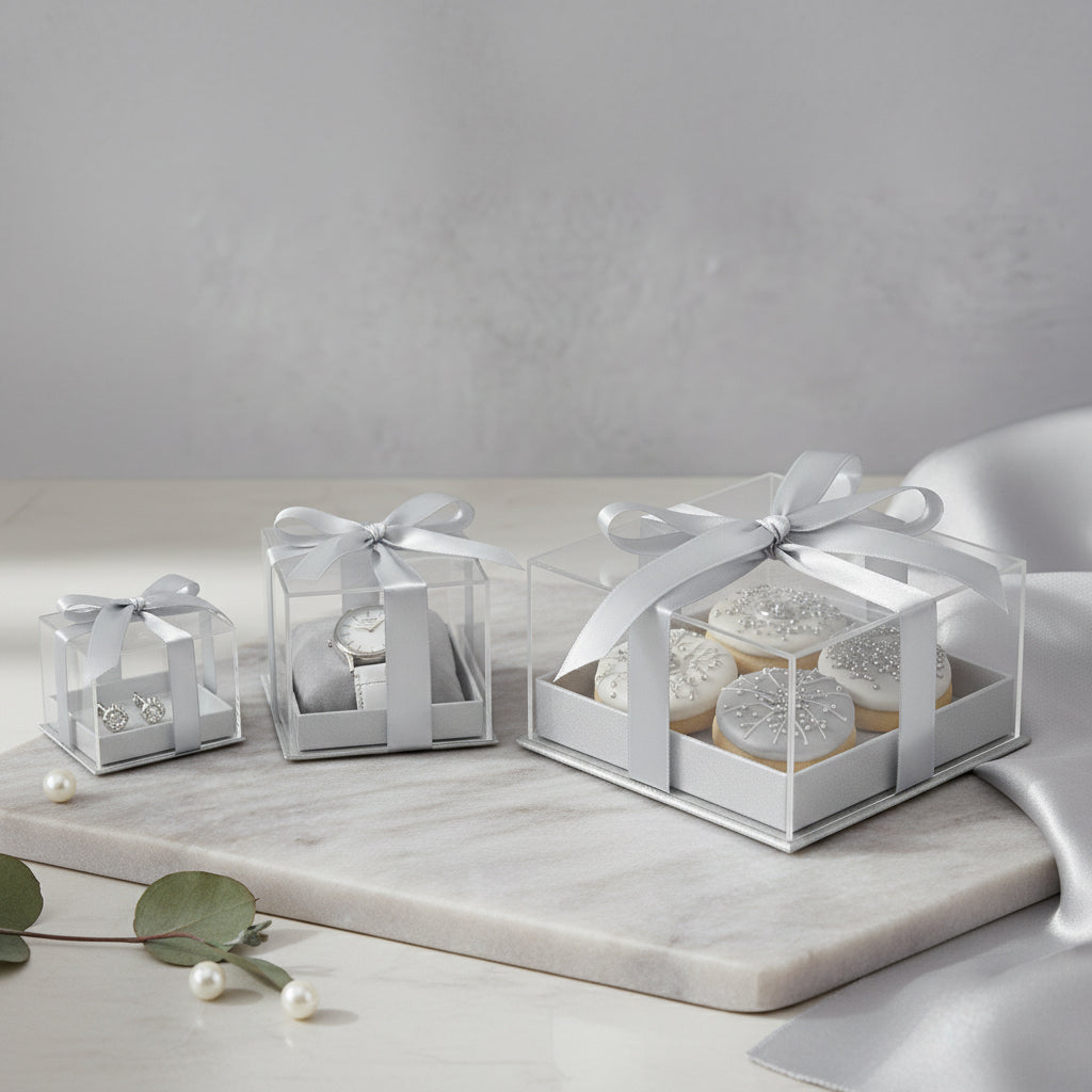 Acrylic Gift Box With Clear Lid and Ribbon Pack of 6 (Sizes & Colors Available)