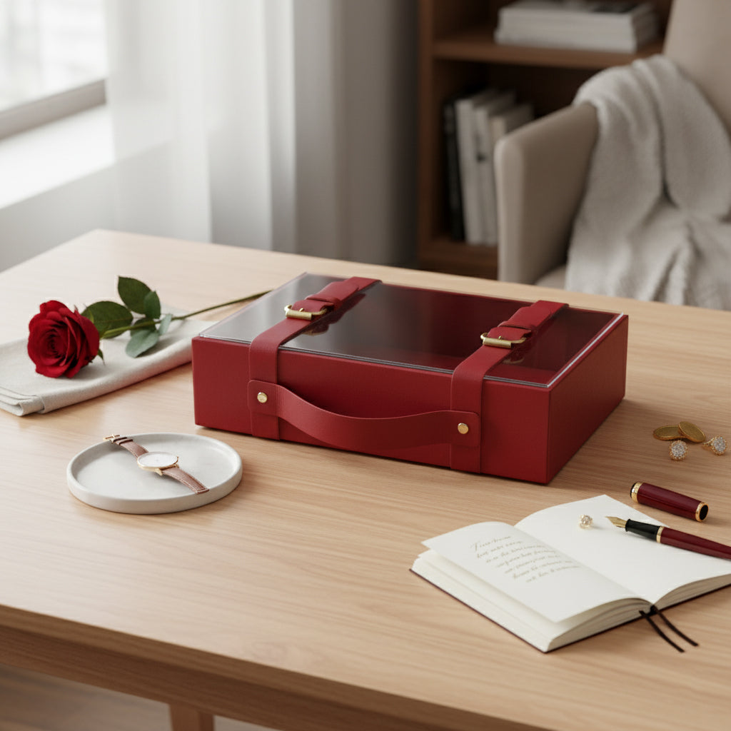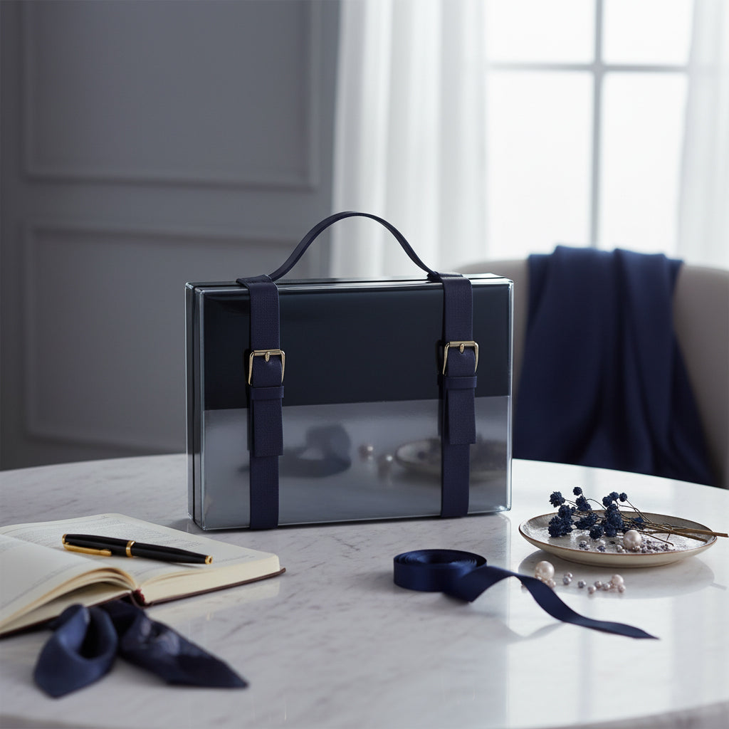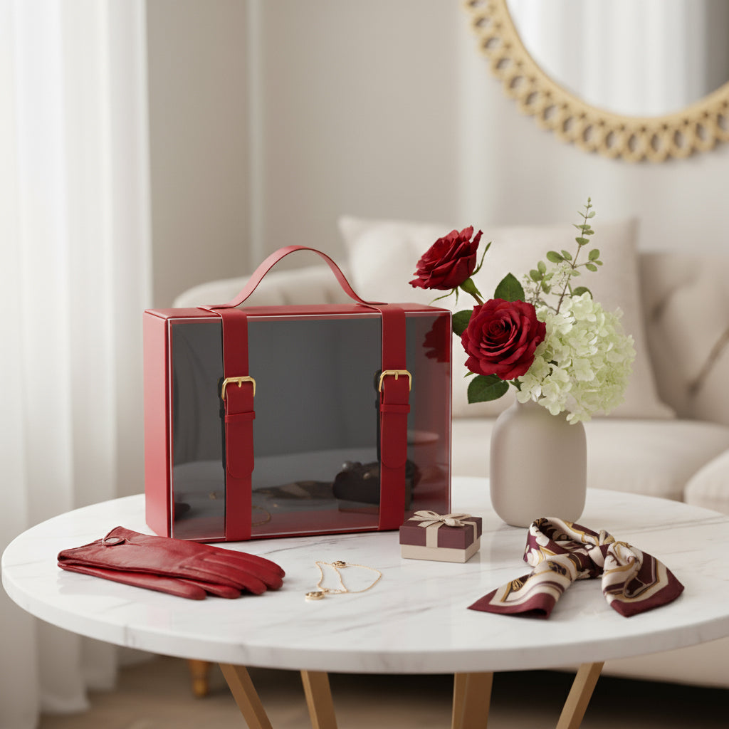 - ✨ Modern Transparent Design – Rigid clear gift boxes with sleek PU leather straps and gold buckles for a luxury presentation.