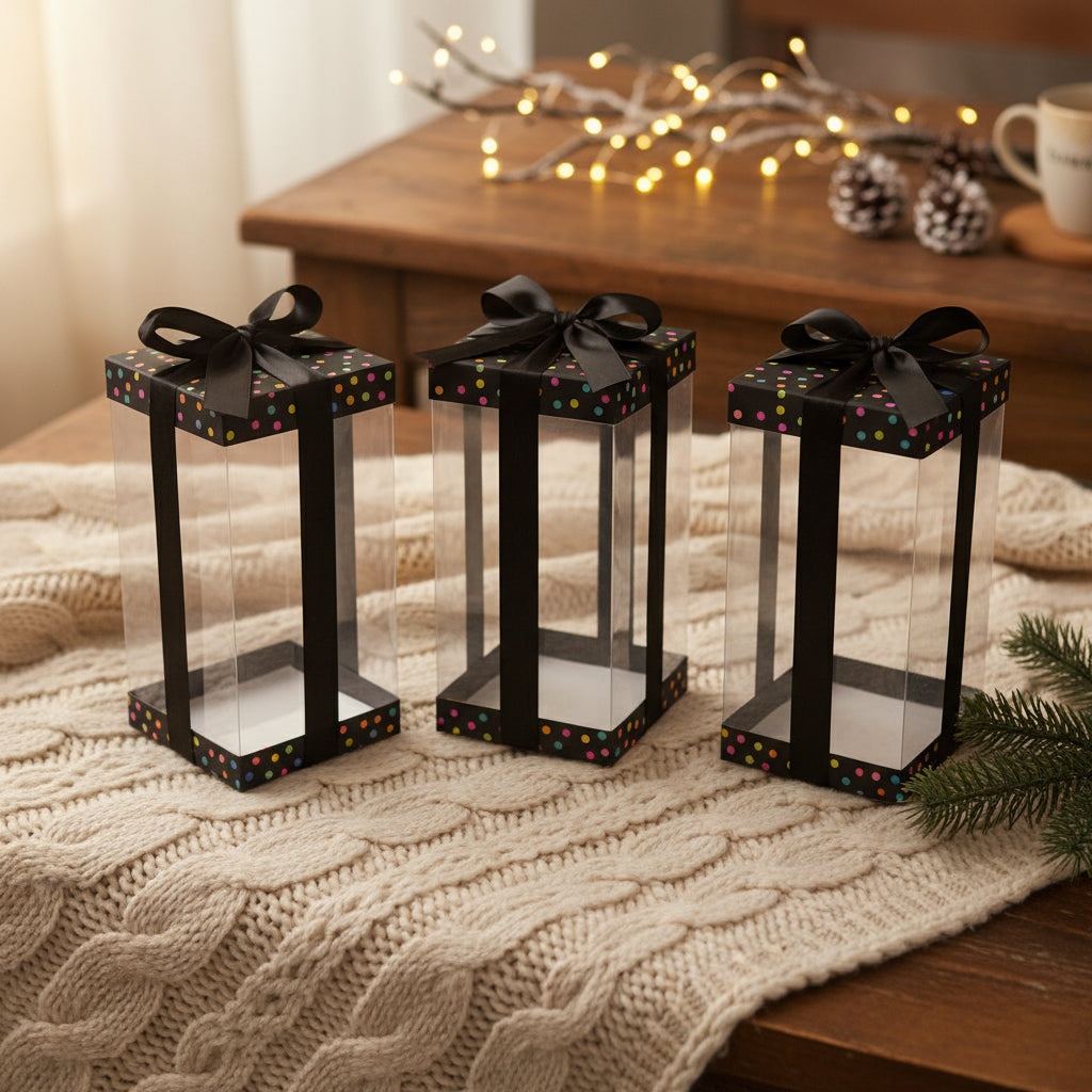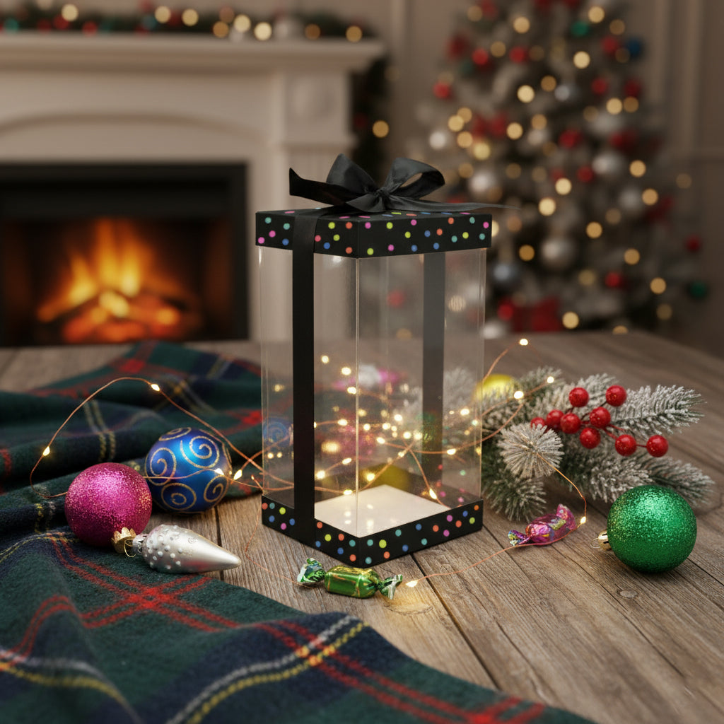 - 🎁 Elegant Transparent Body – Clear PET body allows your gifts to be beautifully displayed, adding a touch of elegance to your presents.