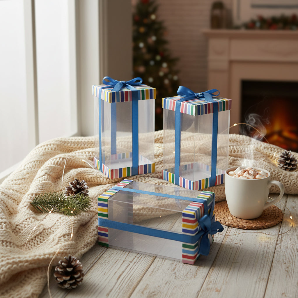 PET Clear Gift Boxes with Printed Lid - Pack of 3 (Colors Available)