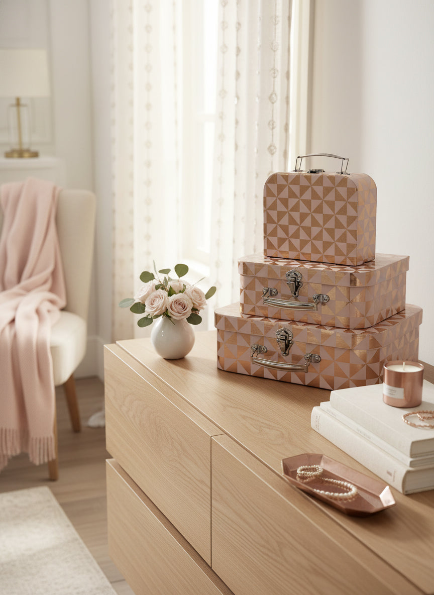 Luxury Rose Gold Foil Suitcase Style Gift Boxes - Set of 3