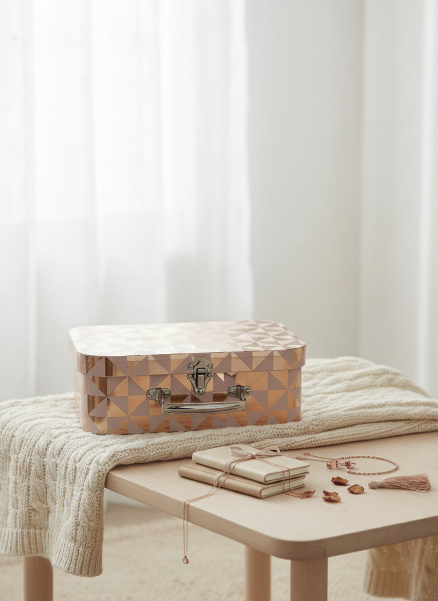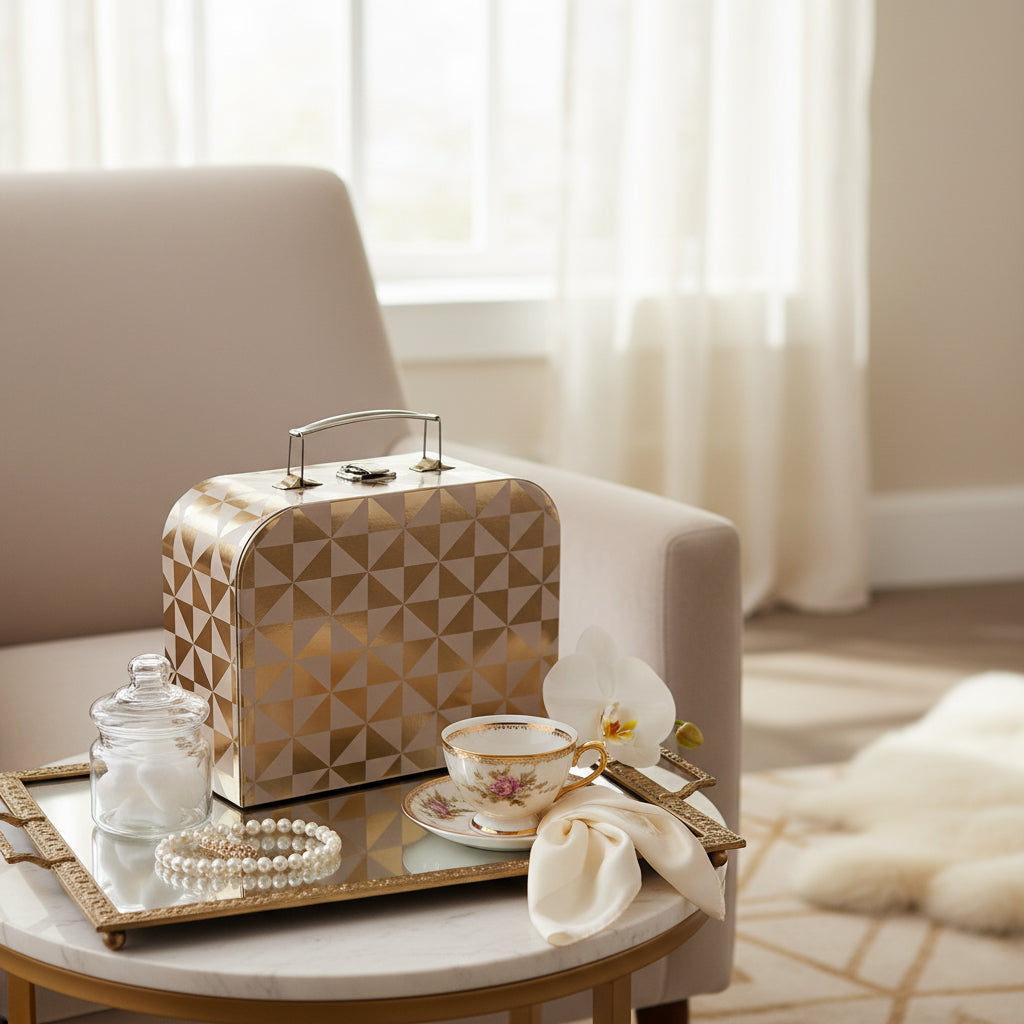 • 🧳Stylish Suitcase Design – Trendy suitcase-style gift boxes with metallic handles and secure clasps for a unique presentation.