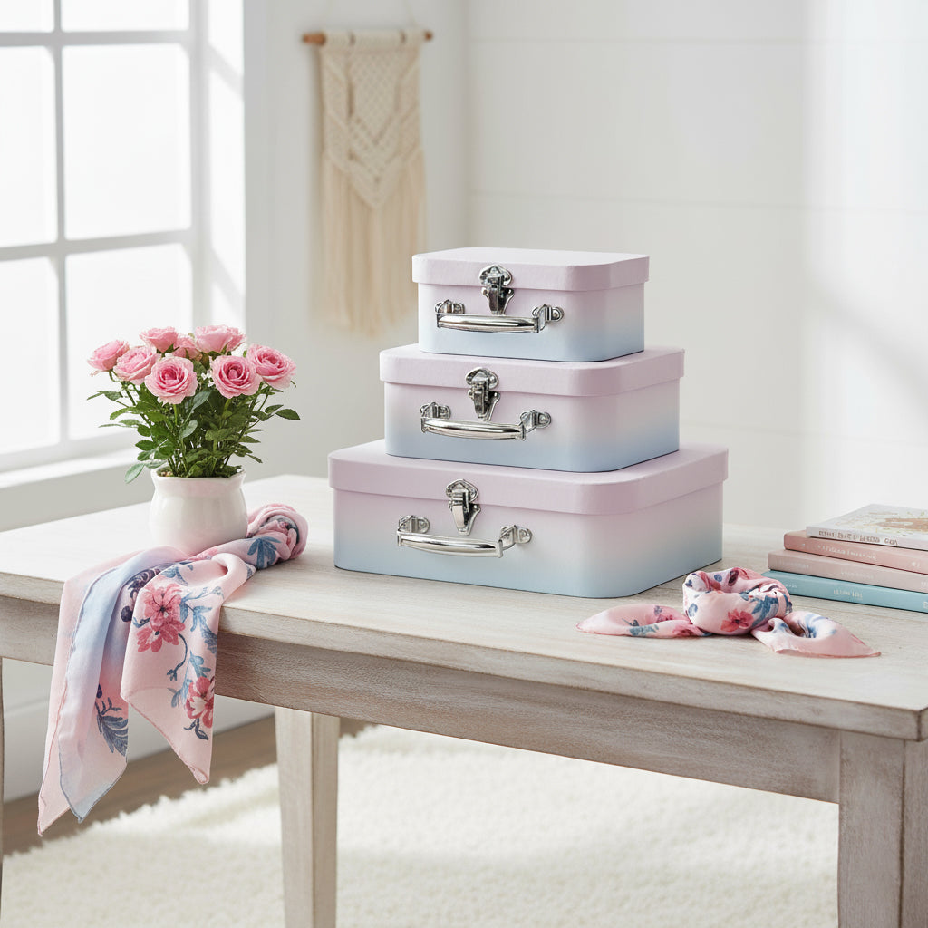 Luxury Pink Blue Ombre Suitcase Style Gift Boxes - Set of 3