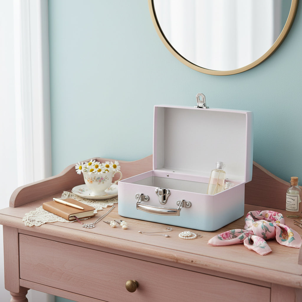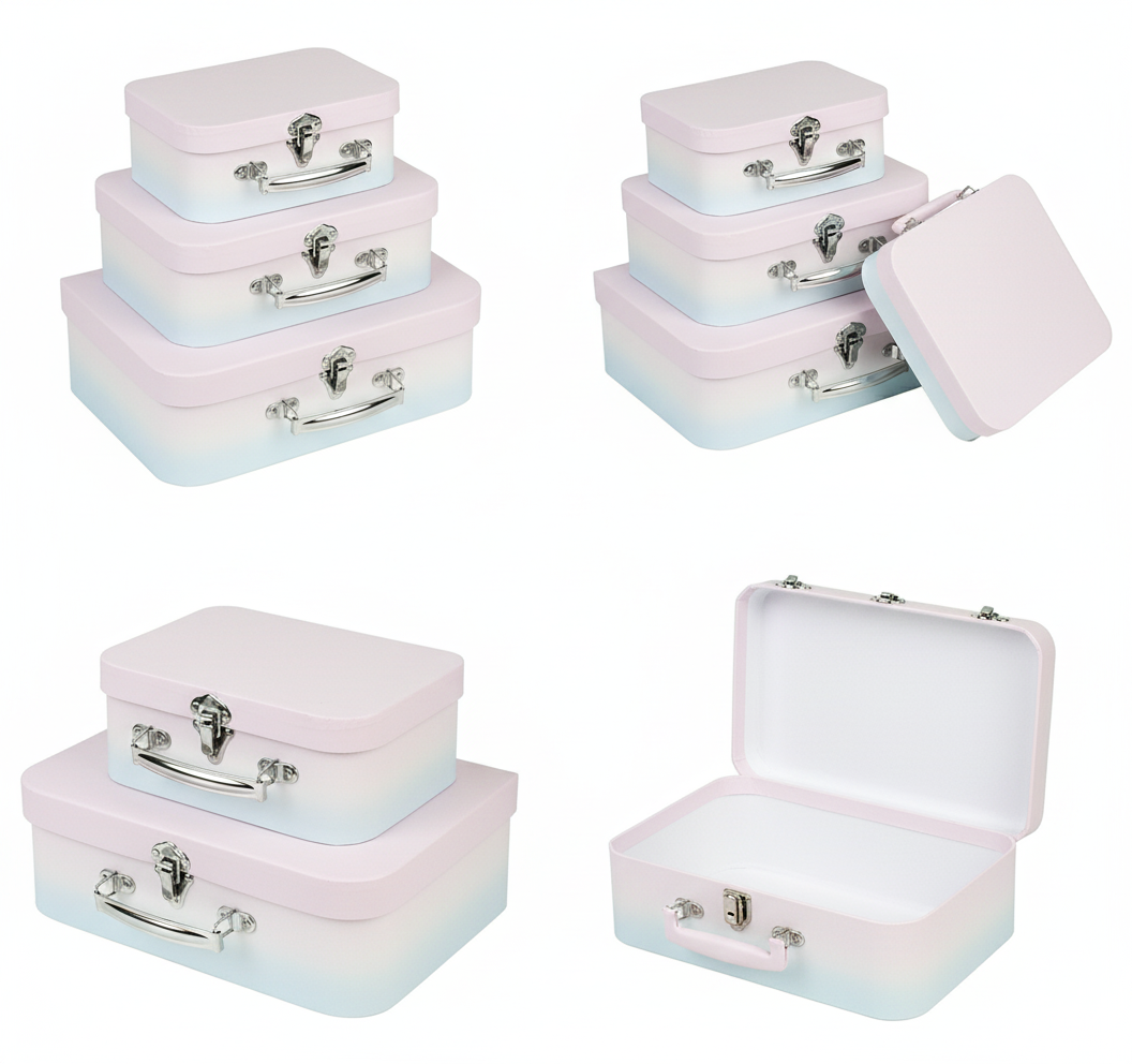 • đź§łChic Suitcase Design – Elegant suitcase-style gift boxes with silver metal clasps and handles for a stylish finish.