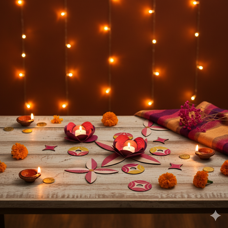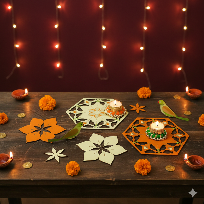 Elegent Decorative Festival Rangoli Set With Tealight Holders