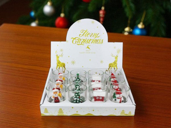 Assorted Christmas Theme Scented Glass Candle - Pack of 12
