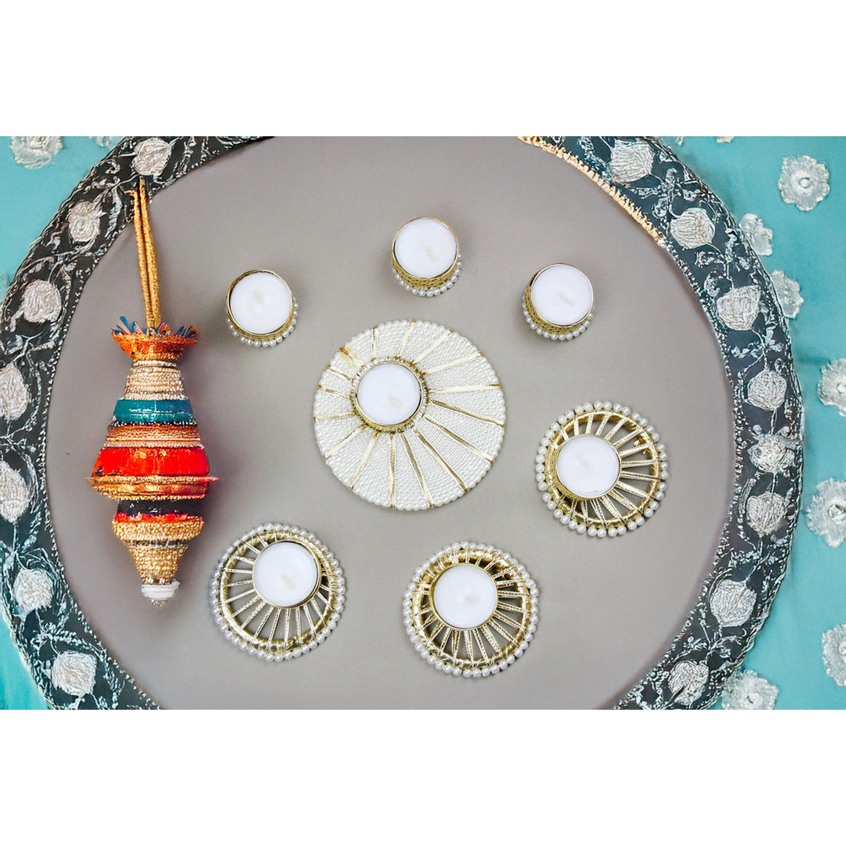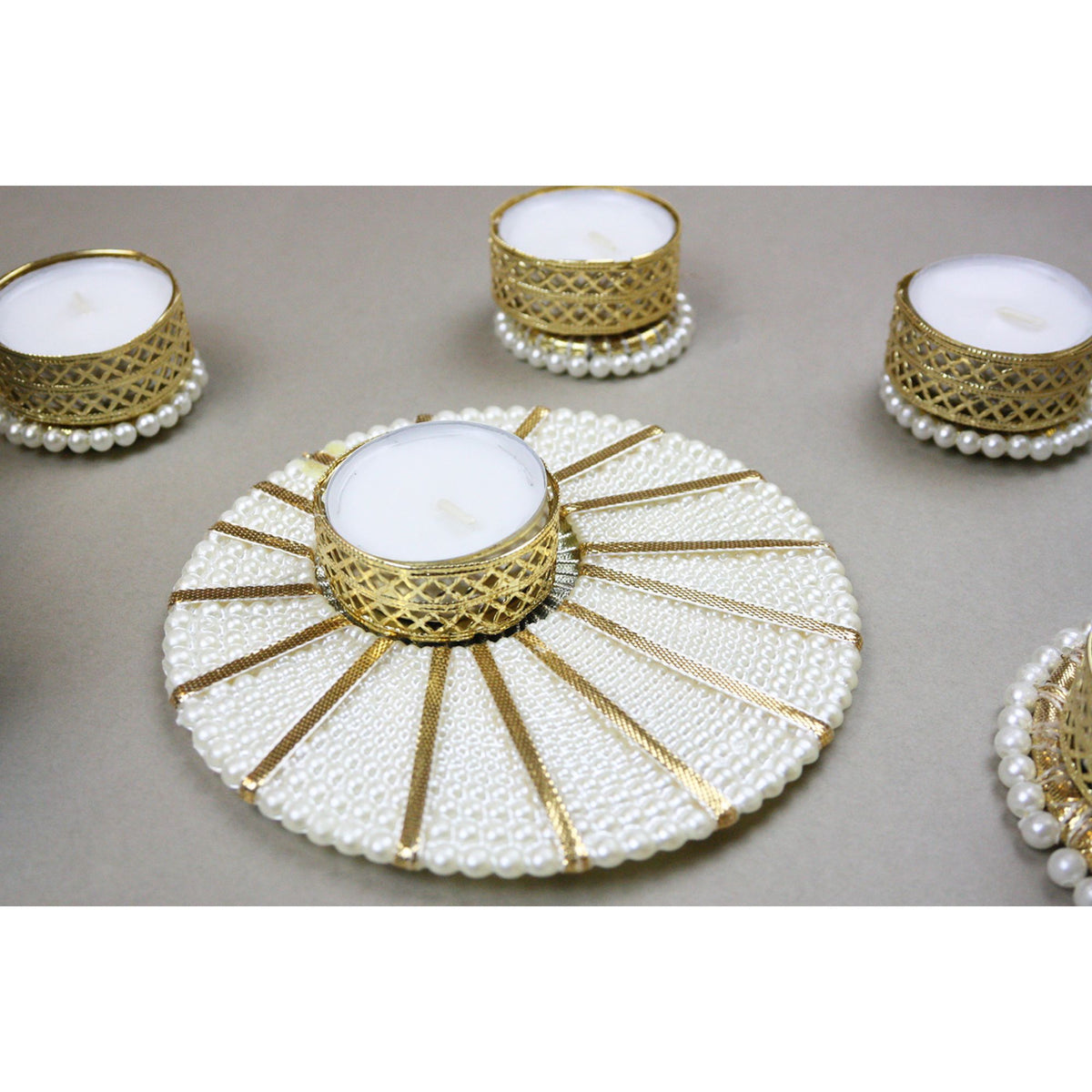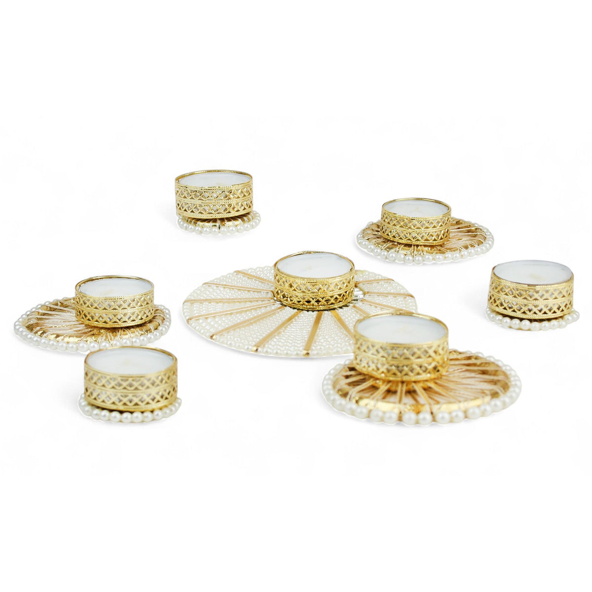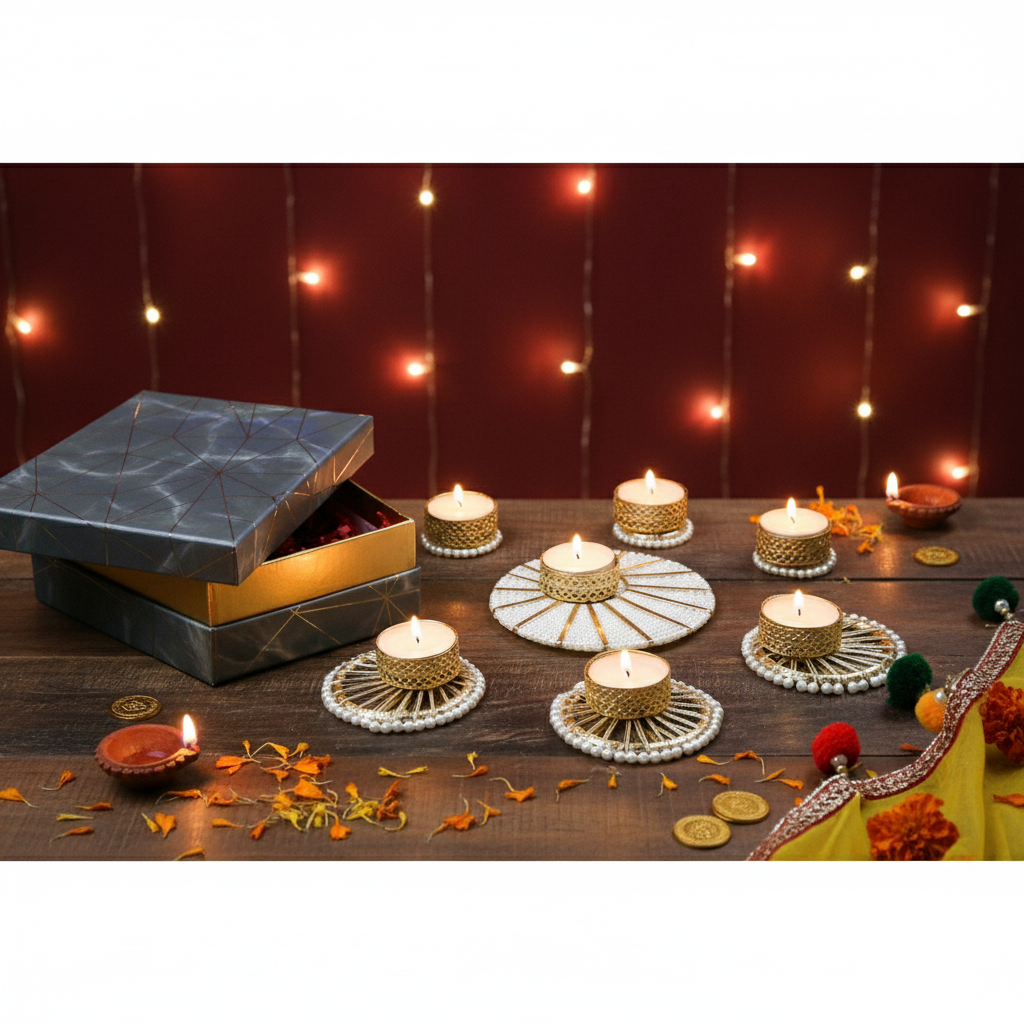 - 🪔 Set of 7 Premium Holders – Includes 7 beautifully crafted tealight candle holders with pearl detailing, perfect for festive décor.