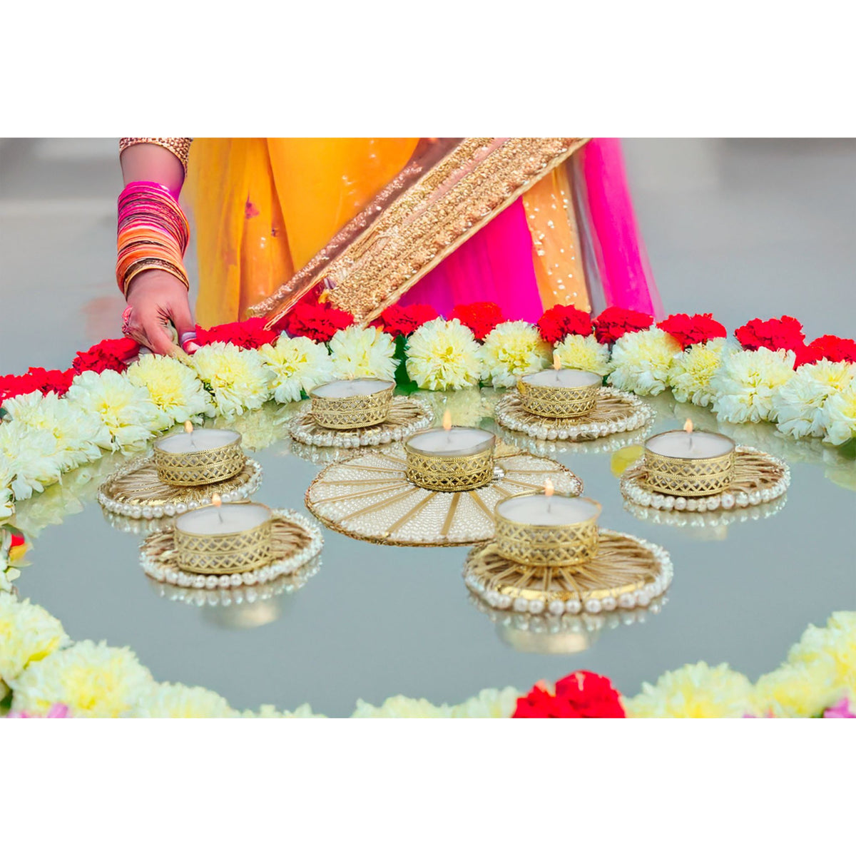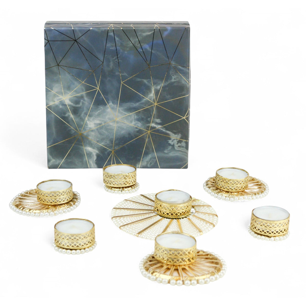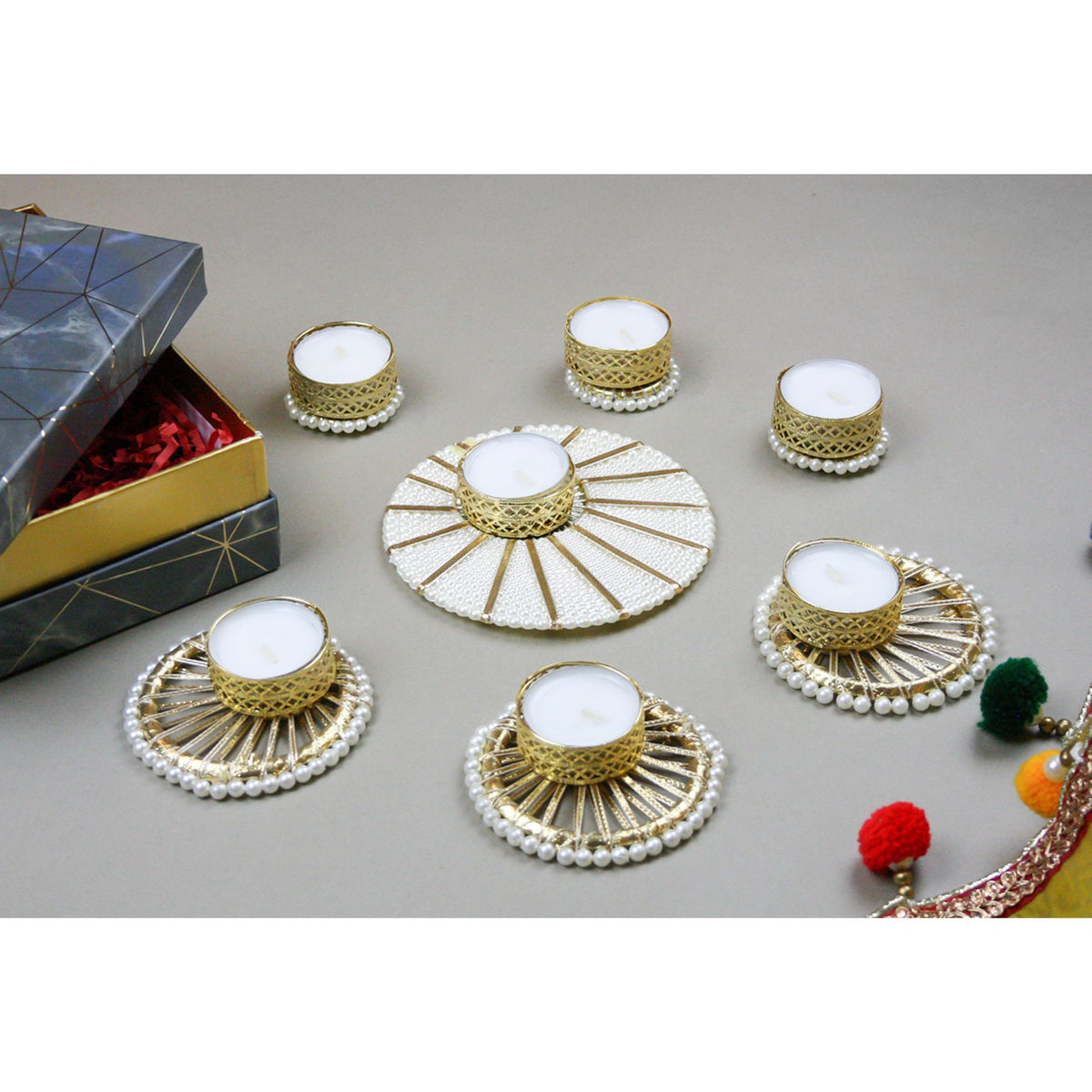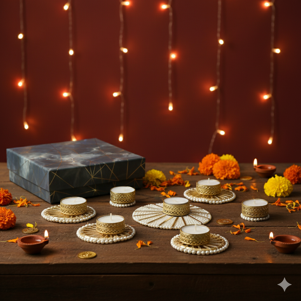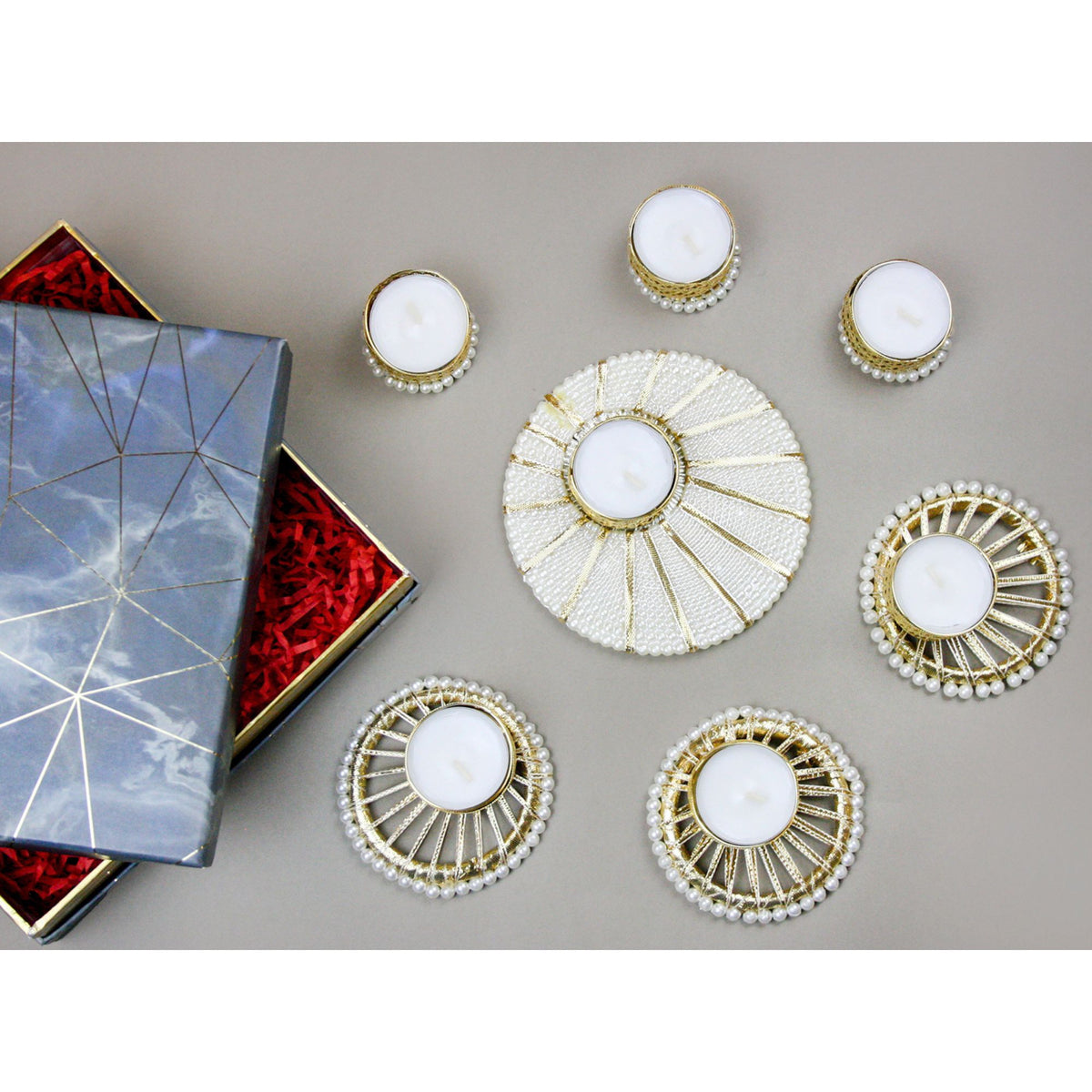 - 🪔 Set of 7 Premium Holders – Includes 7 beautifully crafted tealight candle holders with pearl detailing, perfect for festive décor.