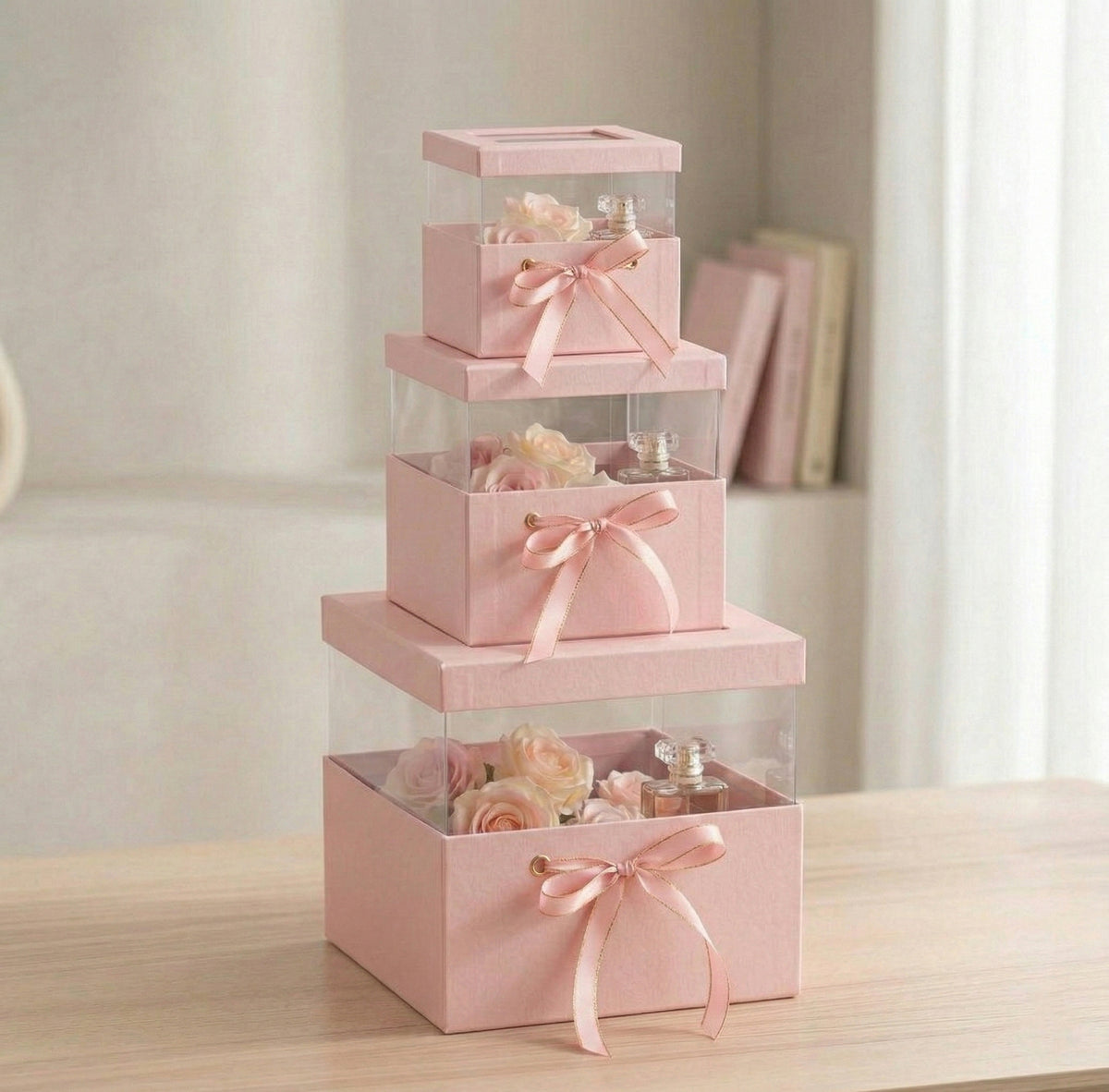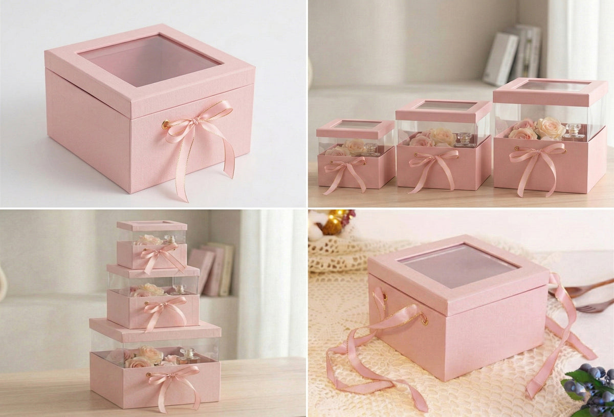 Baby Pink Transparent Top Gift Boxes - Set of 3