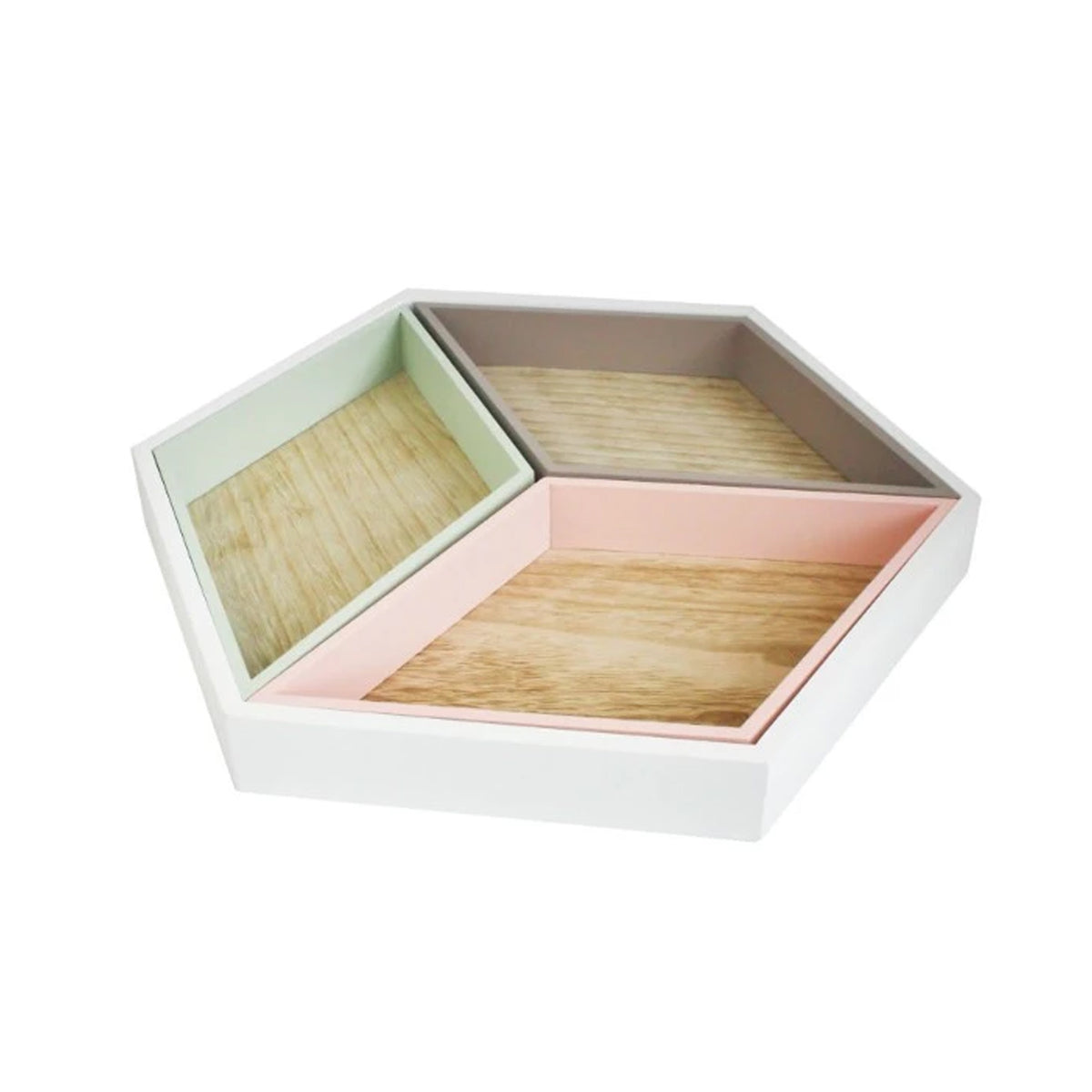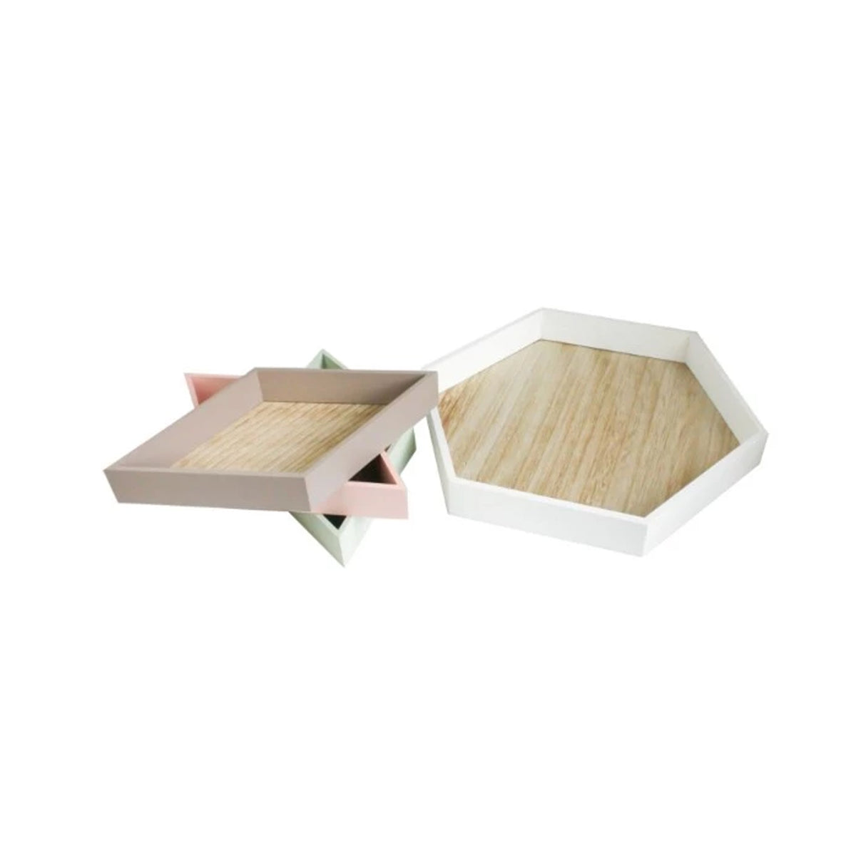 Hexagonal Wooden Tray - Pack of 4