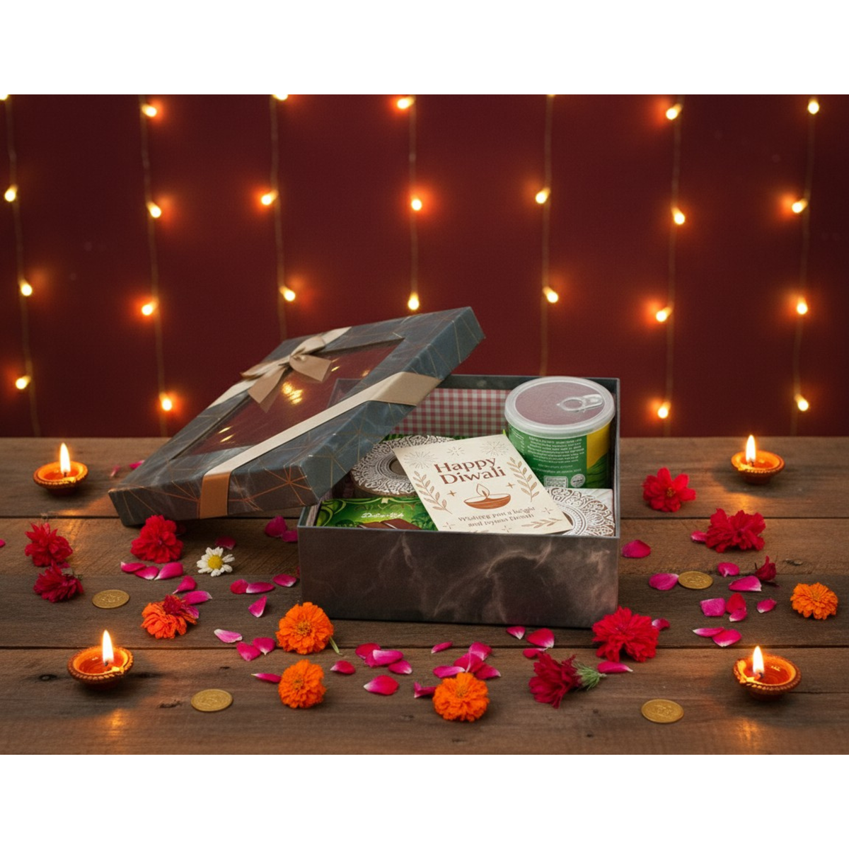 - 💌 Greeting Card Included – Share your heartfelt wishes with a stylish “Happy Diwali” card included in the set.